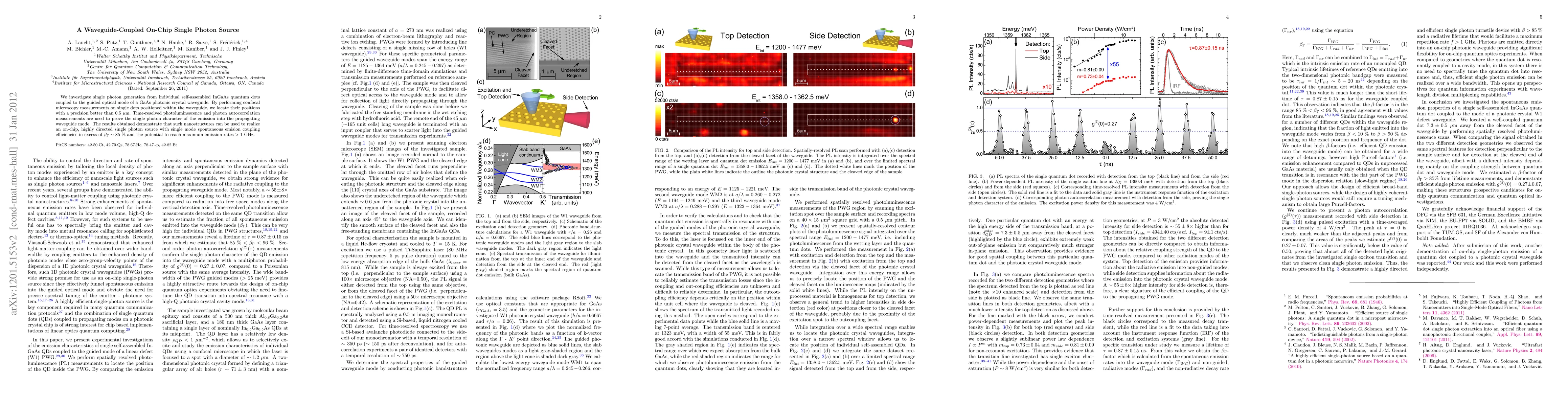 This paper details the development of an on-chip single photon source by coupling self-assembled InGaAs quantum dots to a GaAs photonic crystal waveguide, achieving single-photon emission with coupling efficiencies over 85% and high emission rates exceeding 1 GHz. The precise positioning of quantum dots within the waveguide was confirmed through confocal microscopy.