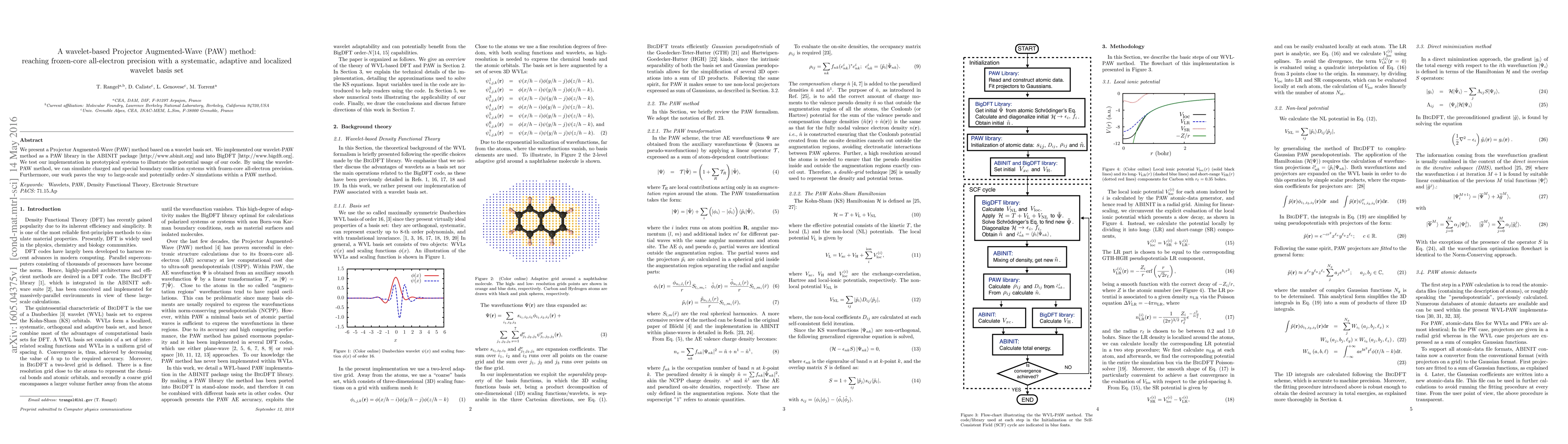We present a Projector Augmented-Wave~(PAW) method based on a wavelet basis set. We implemented our wavelet-PAW method as a PAW library in the ABINIT package [http://www.abinit.org] and into BigDFT [http://www.bigdft.org]. We test our implementation in prototypical systems to illustrate the potential usage of our code. By using the wavelet-PAW method, we can simulate charged and special boundary condition systems with frozen-core all-electron precision. Furthermore, our work paves the way to large-scale and potentially order-N simulations within a PAW method.
