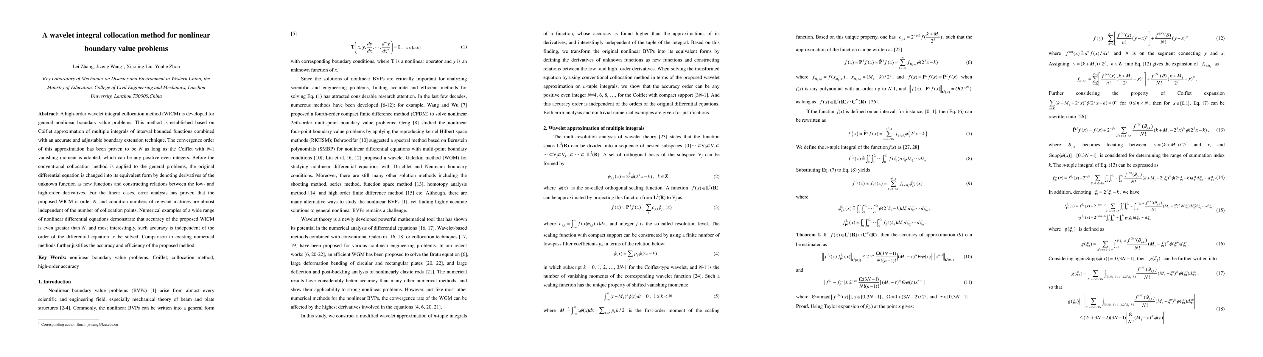 The paper introduces a high-order wavelet integral collocation method (WICM) for solving nonlinear boundary value problems in physics, demonstrating its accuracy and efficiency through error analysis and numerical examples. The method achieves convergence order N and maintains accuracy independent of the differential equation order.