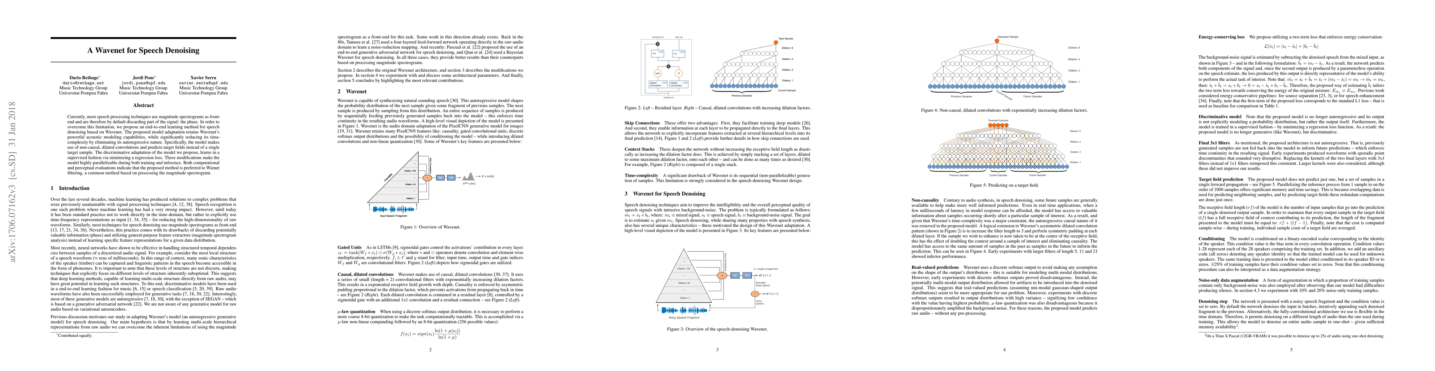 A new speech denoising method using a Wavenet model is proposed, which retains acoustic modeling capabilities while reducing time-complexity and utilizing non-causal convolutions to predict target fields.