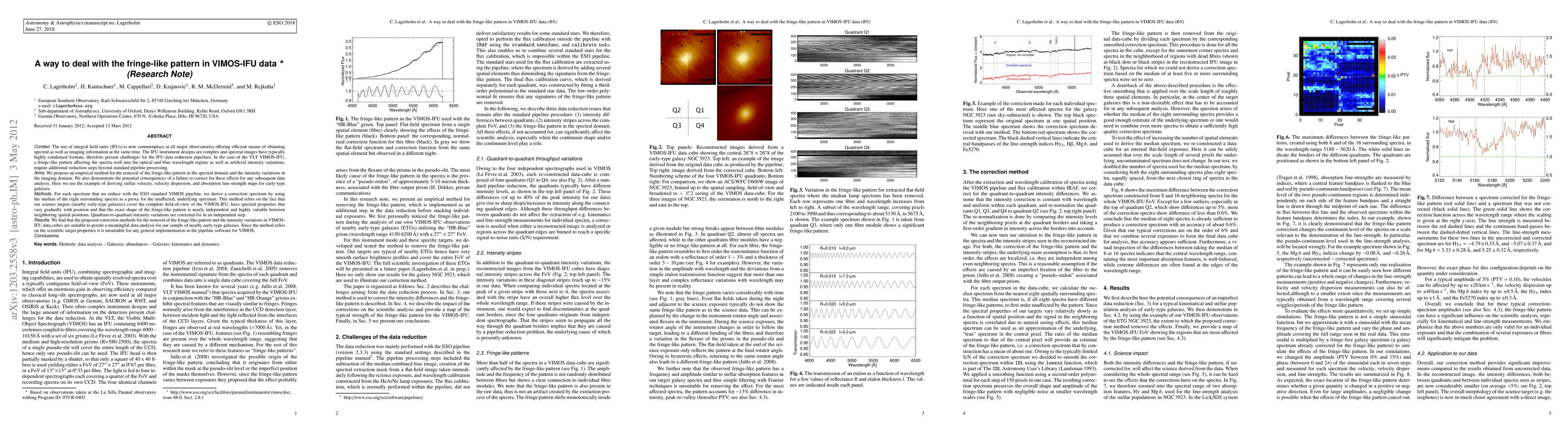 This paper proposes an empirical method to remove fringe-like patterns and artificial intensity variations in VIMOS-IFU data, using the median of surrounding spectra as a correction proxy. The method is effective for analyzing nearby early-type galaxies but not generalizable for broader VIMOS data reduction.