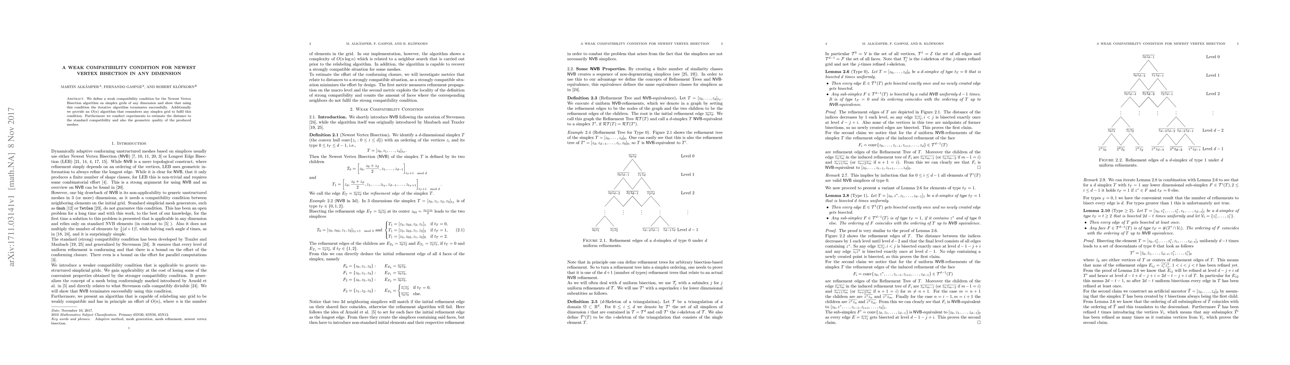 We define a weak compatibility condition for the Newest Vertex Bisection algorithm on simplex grids of any dimension and show that using this condition the iterative algorithm terminates successfully. Additionally we provide an O(n) algorithm that renumbers any simplex grid to fulfil this condition. Furthermore we conduct experiments to estimate the distance to the standard compatibility and also the geometric quality of the produced meshes.