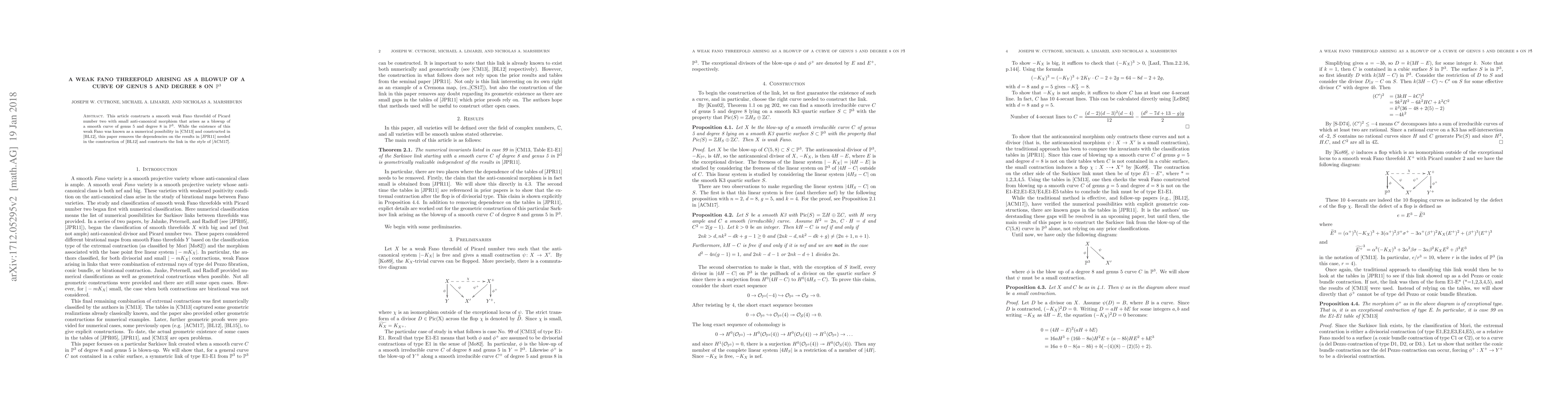 This article constructs a smooth weak Fano threefold of Picard number two with small anti-canonical morphism that arises as a blowup of a smooth curve of genus 5 and degree 8 in $\mathbb{P}^3$. While the existence of this weak Fano was known as a numerical possibility in \cite{CM13} and constructed in BL12, this paper removes the dependencies on the results in \cite{JPR11} needed in the construction of BL12 and constructs the link in the style of ACM17.