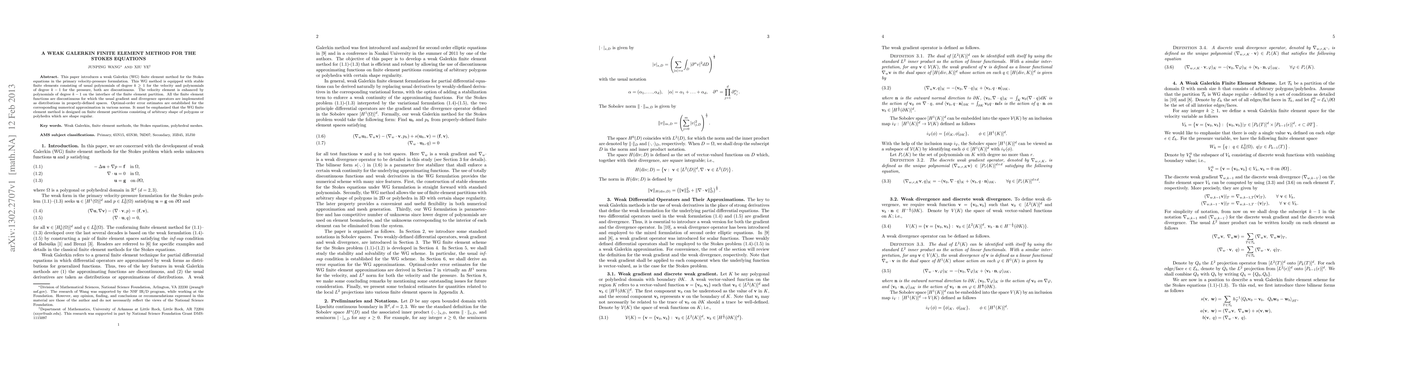 The paper introduces a Weak Galerkin finite element method for the Stokes equations, providing stable finite elements, optimal-order error estimates, and a solid theoretical foundation for stability and solvability.