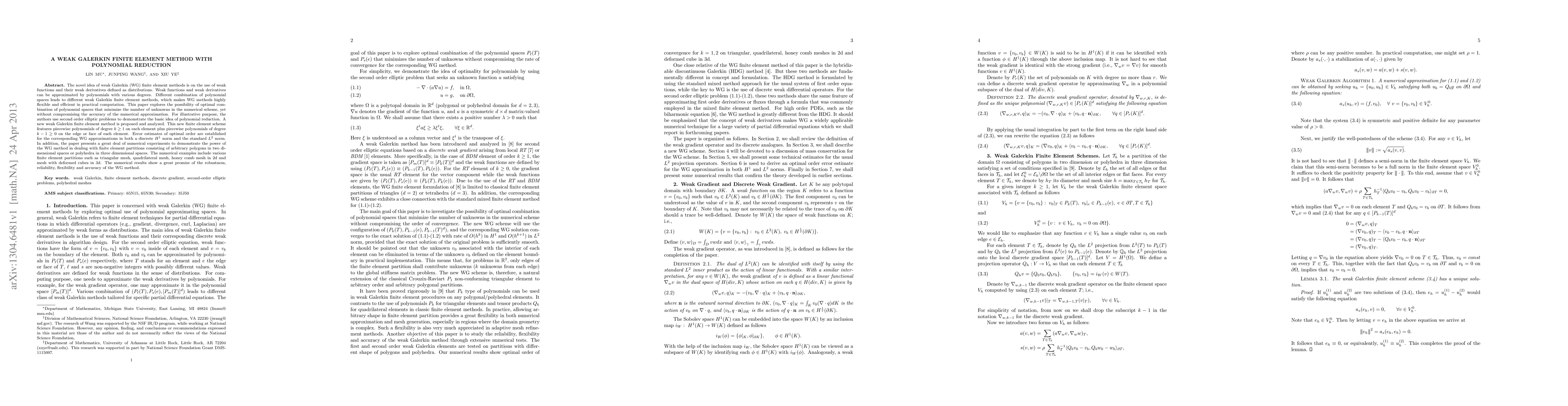 This paper proposes a new weak Galerkin finite element method using polynomial reduction to minimize the number of unknowns while maintaining accuracy. The method employs piecewise polynomials of degree $k$ and $k-1$ on elements and edges, respectively, and demonstrates optimal error estimates and robustness through numerical experiments on various mesh types.