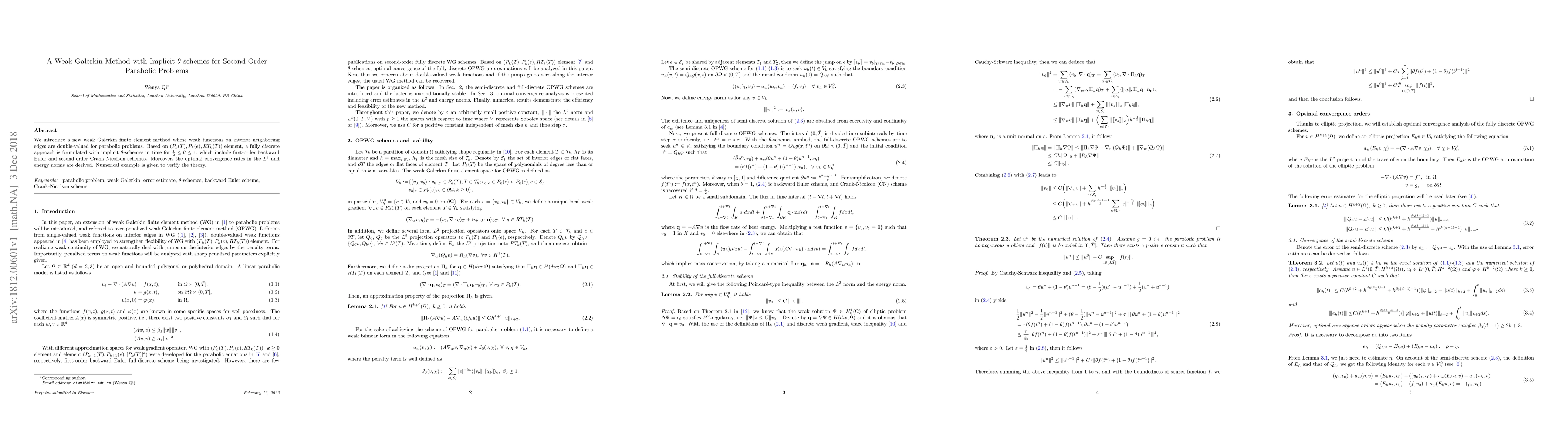 This paper proposes a new weak Galerkin finite element method for second-order parabolic problems, employing double-valued weak functions and implicit $\theta$-schemes for time discretization. Optimal convergence rates in $L^2$ and energy norms are derived, and numerical examples validate the theoretical results.