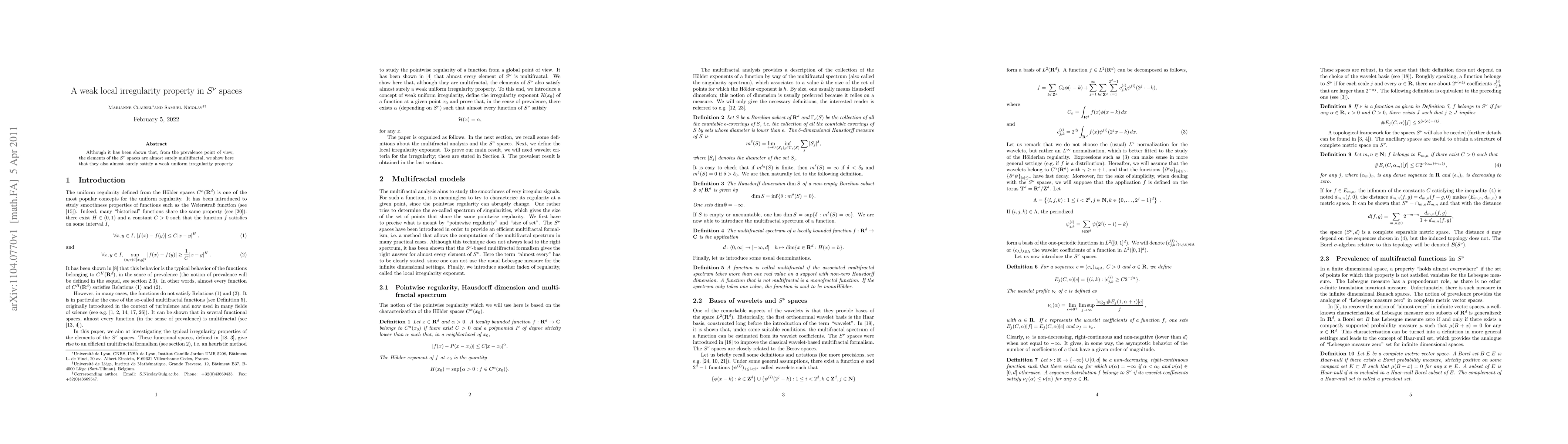 Summary: This paper demonstrates that elements of S^ν spaces, which are almost certainly multifractal, also almost certainly exhibit a weak uniform irregularity property, highlighting a notable local irregularity characteristic.