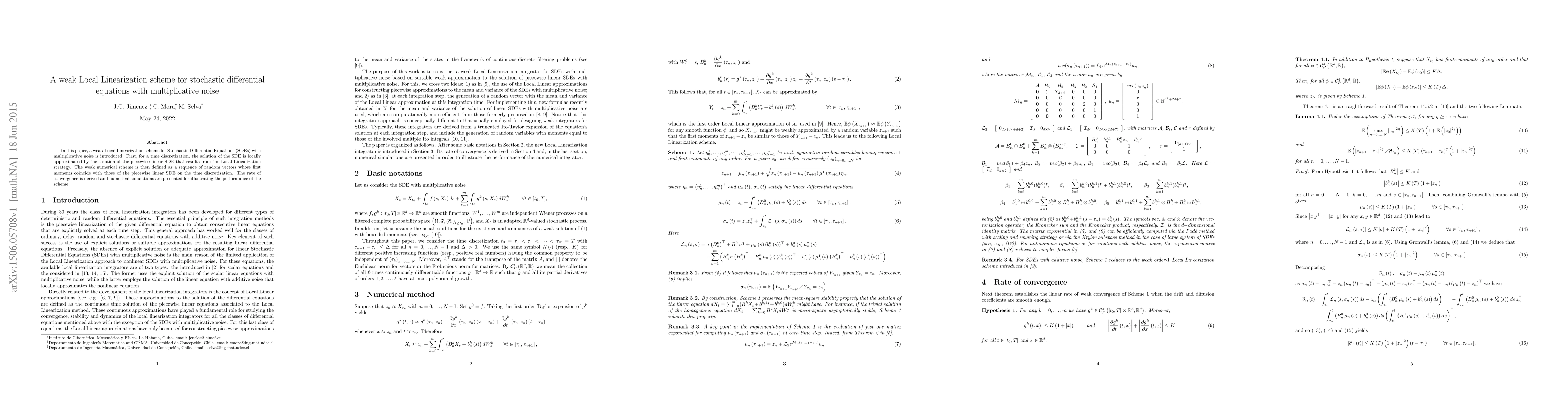 This paper introduces a weak Local Linearization scheme for solving Stochastic Differential Equations (SDEs) with multiplicative noise, approximating solutions via piecewise linear SDEs. The scheme's convergence rate is derived, and numerical simulations demonstrate its effectiveness.