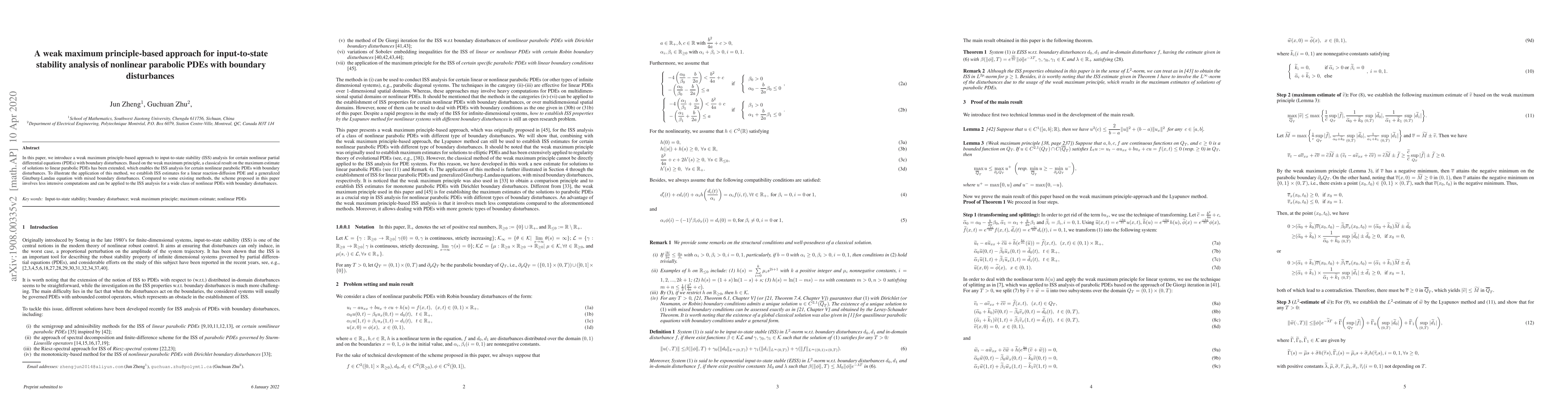 In this paper, we introduce a weak maximum principle-based approach to input-to-state stability (ISS) analysis for certain nonlinear partial differential equations (PDEs) with boundary disturbances. Based on the weak maximum principle, a classical result on the maximum estimate of solutions to linear parabolic PDEs has been extended, which enables the ISS analysis for certain {}{nonlinear} parabolic PDEs with boundary disturbances. To illustrate the application of this method, we establish ISS estimates for a linear reaction-diffusion PDE and a generalized Ginzburg-Landau equation with {}{mixed} boundary disturbances. Compared to some existing methods, the scheme proposed in this paper involves less intensive computations and can be applied to the ISS analysis for a {wide} class of nonlinear PDEs with boundary disturbances.