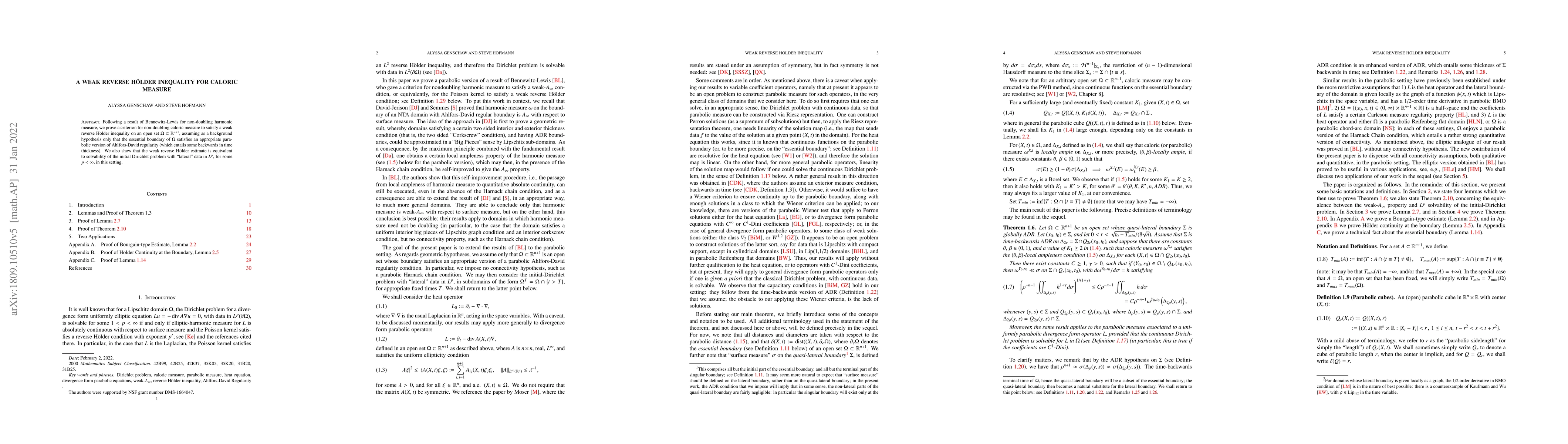 This paper establishes a weak reverse Hölder inequality for non-doubling caloric measure under the condition that the essential boundary of the open set $\Omega$ meets a parabolic Ahlfors-David regularity criterion. It also demonstrates the equivalence of this inequality to the solvability of the initial Dirichlet problem with lateral data in $L^p$ for some finite $p$.