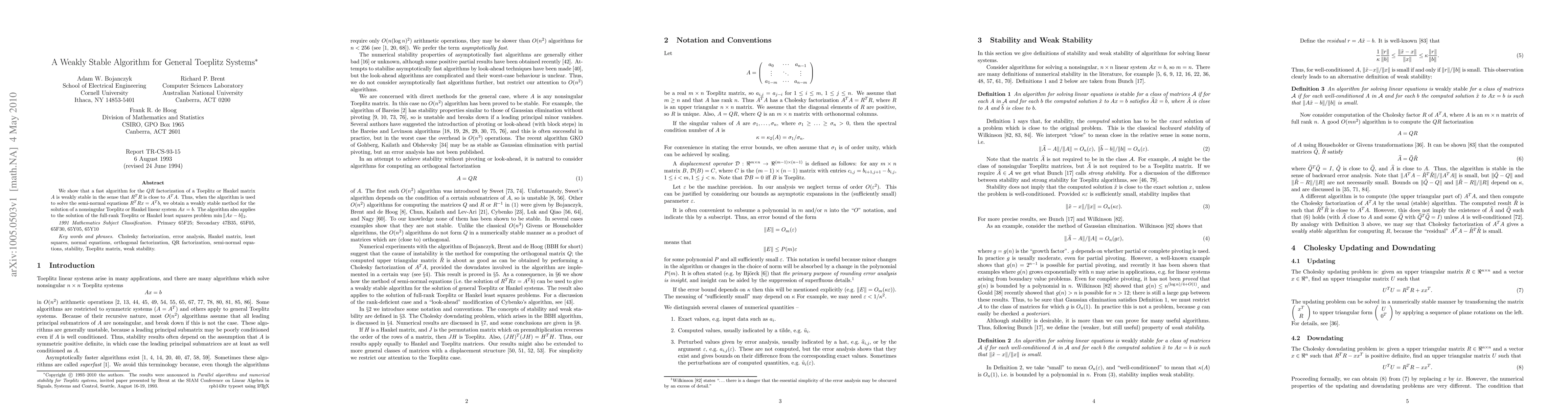A research paper introduces a fast algorithm for solving Toeplitz or Hankel linear systems with a weakly stable method that also applies to least squares problems.