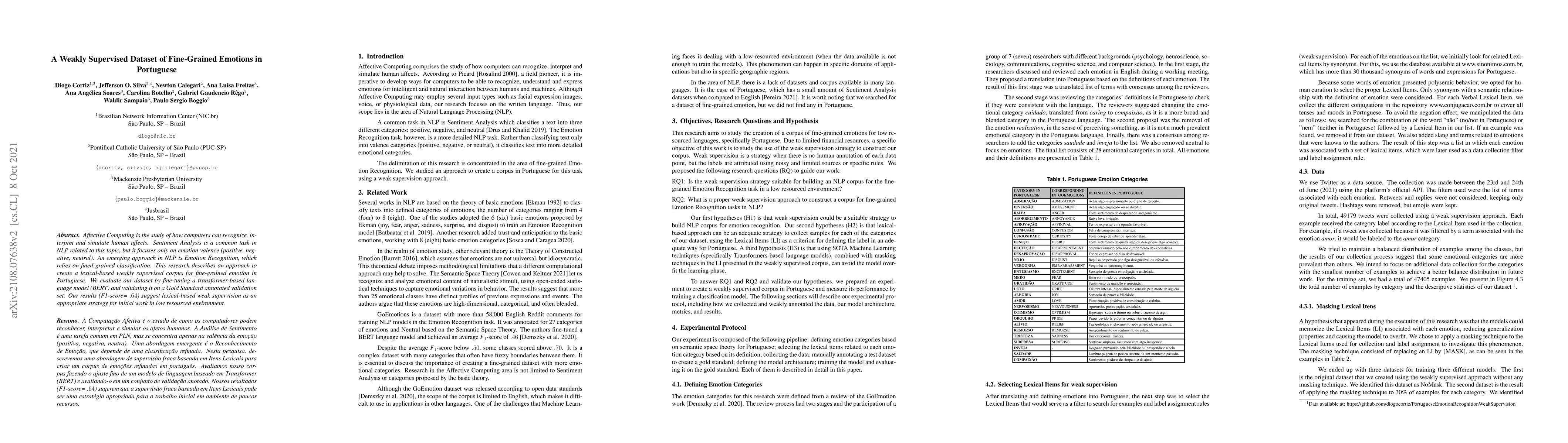 The study demonstrates the effectiveness of Weak Supervision for fine-grained Emotion Recognition in Portuguese and provides a new approach for collecting and annotating data in low-resource scenarios.