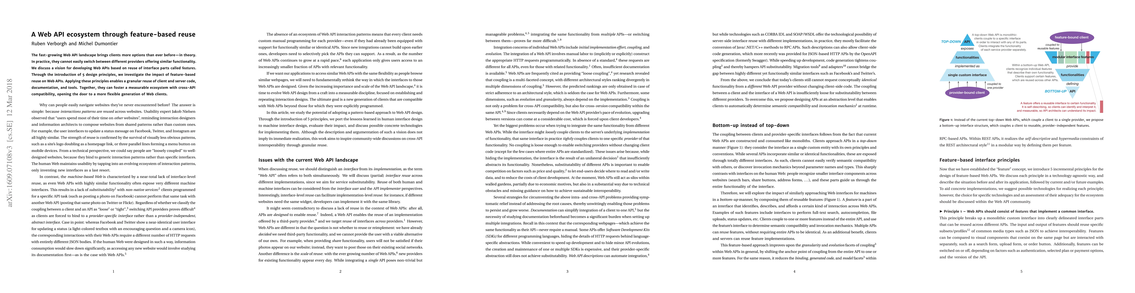 The fast-growing Web API landscape brings clients more options than ever before---in theory. In practice, they cannot easily switch between different providers offering similar functionality. We discuss a vision for developing Web APIs based on reuse of interface parts called features. Through the introduction of 5 design principles, we investigate the impact of feature-based reuse on Web APIs. Applying these principles enables a granular reuse of client and server code, documentation, and tools. Together, they can foster a measurable ecosystem with cross-API compatibility, opening the door to a more flexible generation of Web clients.