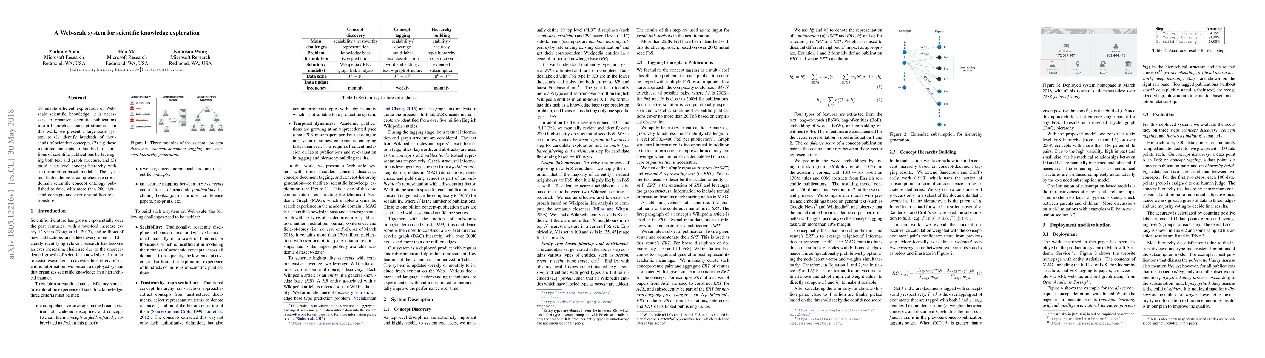 This research introduces a web-scale system that organizes scientific publications into a hierarchical structure, identifying over 200,000 concepts and linking them to millions of publications. It builds a comprehensive cross-domain scientific concept ontology using text and graph structure analysis.