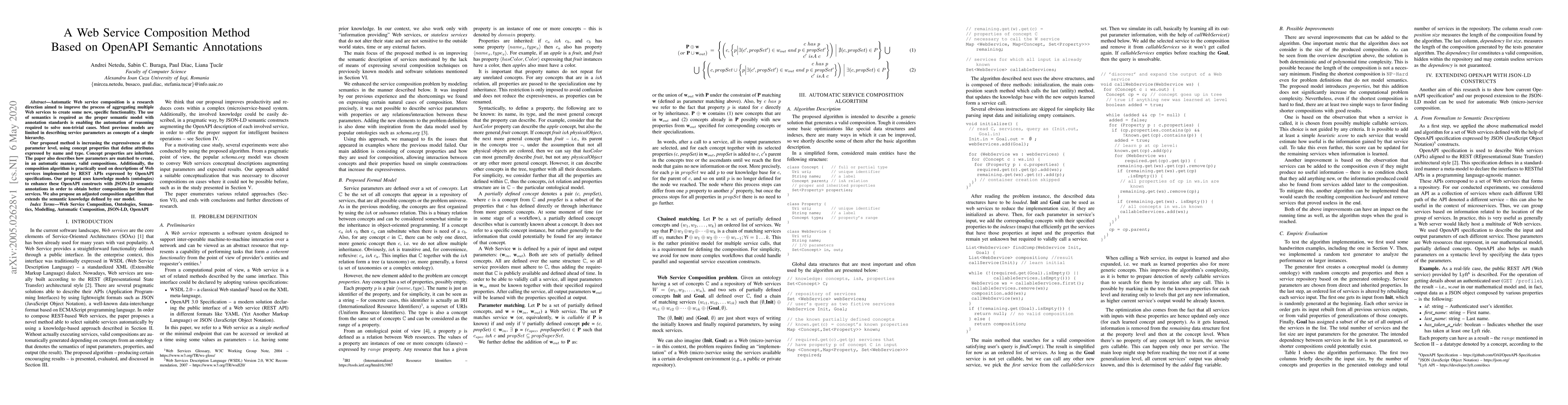 Automatic Web service composition is a research direction aimed to improve the process of aggregating multiple Web services to create some new, specific functionality. The use of semantics is required as the proper semantic model with annotation standards is enabling the automation of reasoning required to solve non-trivial cases. Most previous models are limited in describing service parameters as concepts of a simple hierarchy. Our proposed method is increasing the expressiveness at the parameter level, using concept properties that define attributes expressed by name and type. Concept properties are inherited. The paper also describes how parameters are matched to create, in an automatic manner, valid compositions. Additionally, the composition algorithm is practically used on descriptions of Web services implemented by REST APIs expressed by OpenAPI specifications. Our proposal uses knowledge models (ontologies) to enhance these OpenAPI constructs with JSON-LD semantic annotations in order to obtain better compositions for involved services. We also propose an adjusted composition algorithm that extends the semantic knowledge defined by our model.