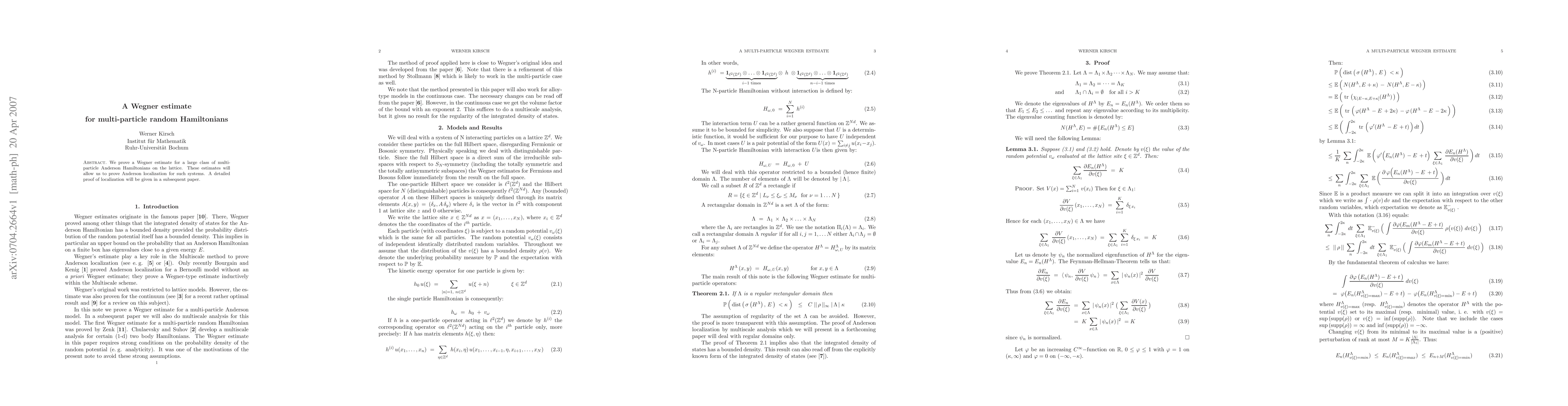 We prove a Wegner estimate for a large class of multiparticle Anderson Hamiltonians on the lattice. These estimates will allow us to prove Anderson localization for such systems. A detailed proof of localization will be given in a subsequent paper.