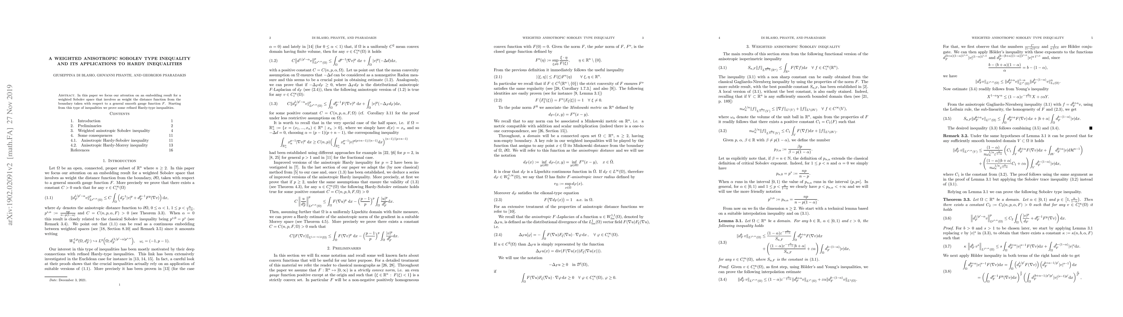 In this paper we focus our attention on an embedding result for a weighted Sobolev space that involves as weight the distance function from the boundary taken with respect to a general smooth gauge function $F$. Starting from this type of inequalities we prove some refined Hardy-type inequalities.