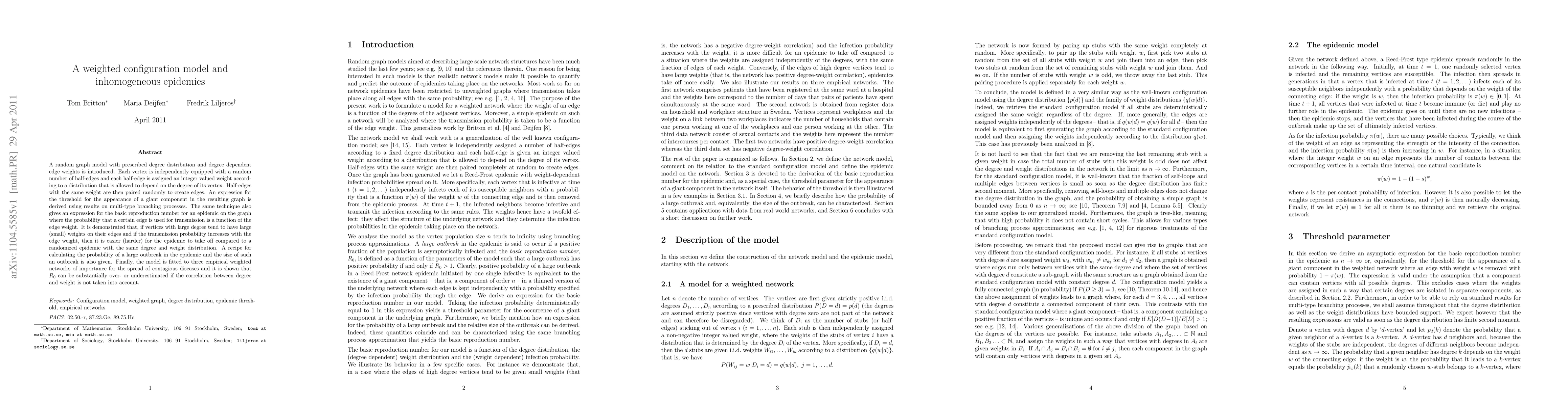 A new graph model with edge weights tied to vertex degree is used to study the spread of diseases, finding that correlations between degree and weight can significantly impact epidemic outcomes.