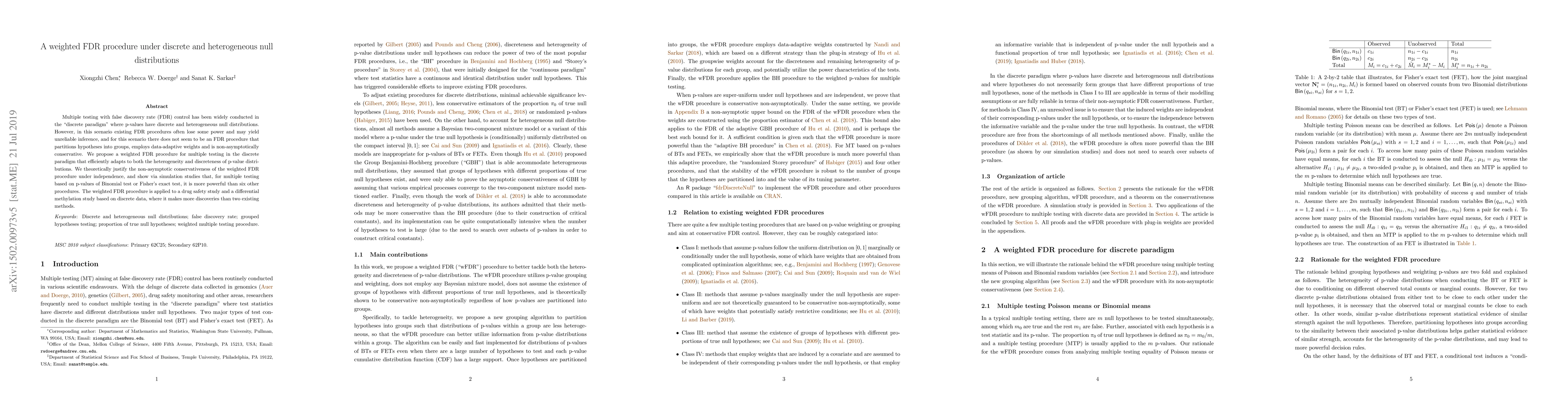 This paper proposes a new weighted FDR procedure for multiple testing in discrete and heterogeneous null distributions, which adapts to the unique characteristics of p-values and maintains theoretical non-asymptotic conservativeness. Simulation studies show it is more powerful than six other methods, and it successfully discovers more in applications to a drug safety study and a differential methylation study.