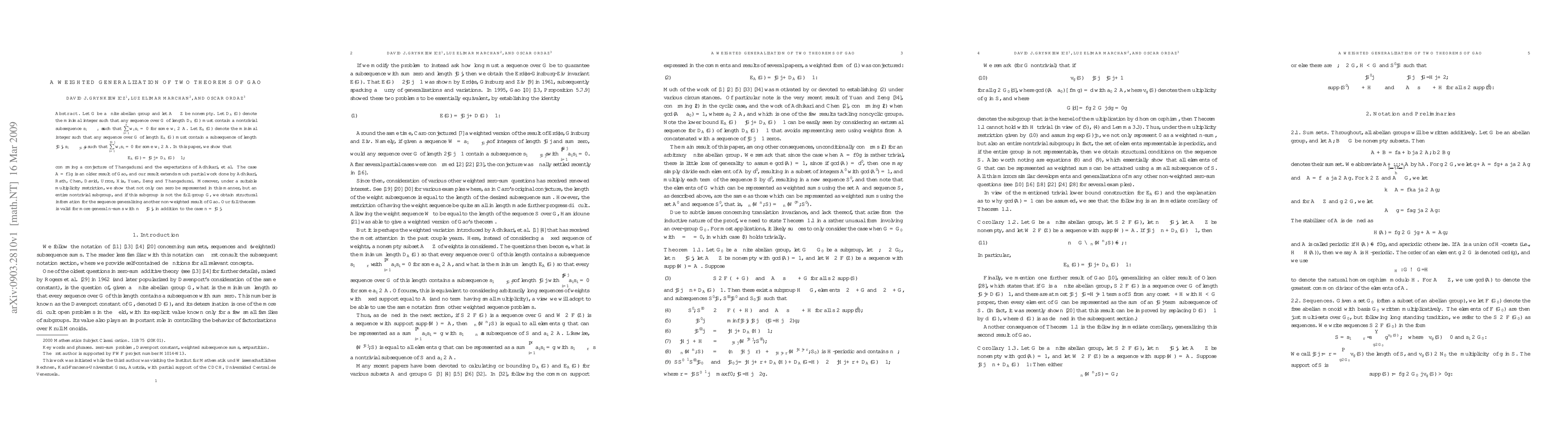 Let $G$ be a finite abelian group and let $A\subseteq \mathbb{Z}$ be nonempty. Let $D_A(G)$ denote the minimal integer such that any sequence over $G$ of length $D_A(G)$ must contain a nontrivial subsequence $s_1... s_r$ such that $\sum_{i=1}^{r}w_is_i=0$ for some $w_i\in A$. Let $E_A(G)$ denote the minimal integer such that any sequence over $G$ of length $E_A(G)$ must contain a subsequence of length $|G|$, $s_1... s_{|G|}$, such that $\sum_{i=1}^{|G|}w_is_i=0$ for some $w_i\in A$. In this paper, we show that $$E_A(G)=|G|+D_A(G)-1,$$ confirming a conjecture of Thangadurai and the expectations of Adhikari, et al. The case $A=\{1\}$ is an older result of Gao, and our result extends much partial work done by Adhikari, Rath, Chen, David, Urroz, Xia, Yuan, Zeng and Thangadurai. Moreover, under a suitable multiplicity restriction, we show that not only can zero be represented in this manner, but an entire nontrivial subgroup, and if this subgroup is not the full group $G$, we obtain structural information for the sequence generalizing another non-weighted result of Gao. Our full theorem is valid for more general $n$-sums with $n\geq |G|$, in addition to the case $n=|G|$.
