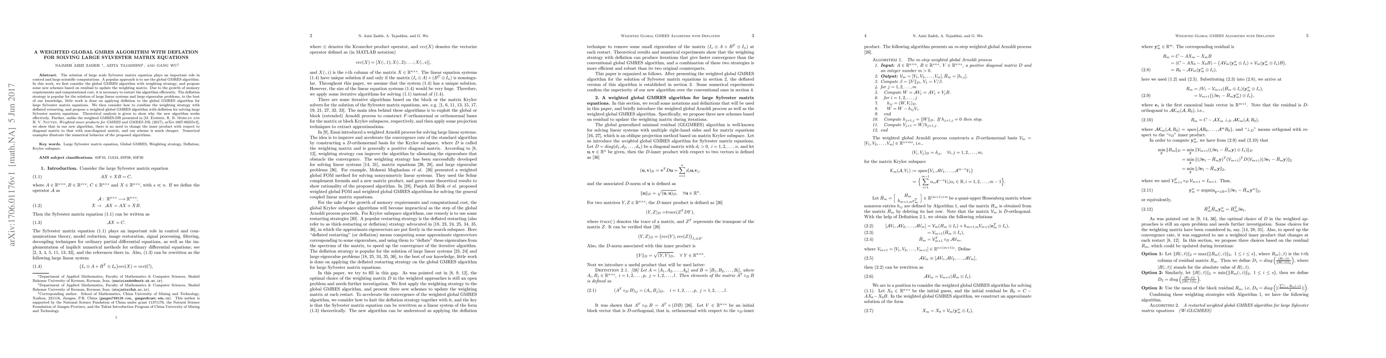 This paper proposes a weighted global GMRES algorithm with deflation for solving large Sylvester matrix equations, combining a weighting strategy with deflated restarting to manage memory and computational costs effectively. Unlike existing methods, it avoids changing the inner product matrix, resulting in a cheaper computational scheme, as demonstrated through theoretical analysis and numerical examples.