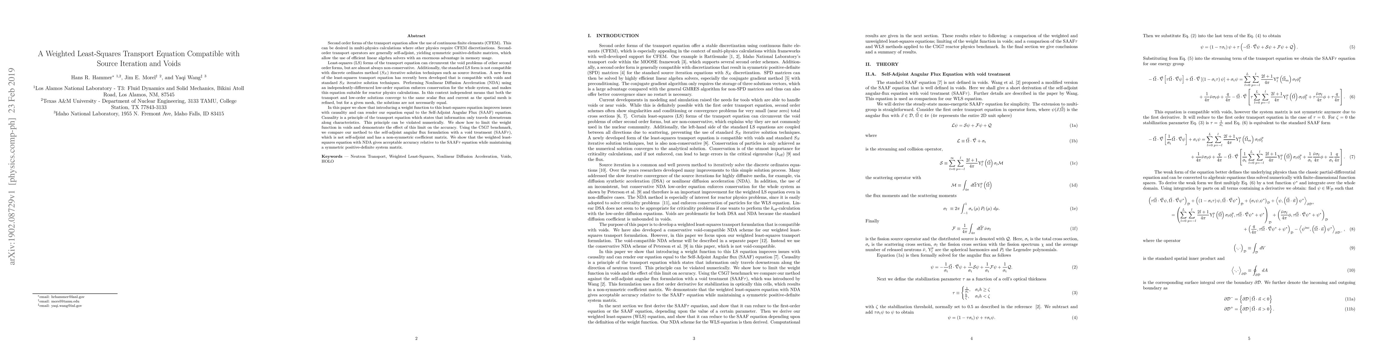 This paper proposes a weighted least-squares transport equation that is compatible with source iteration and voids, addressing the non-conservation and non-iterative compatibility issues of traditional forms. The method employs Nonlinear Diffusion Acceleration to enforce conservation and demonstrates improved causality, achieving comparable accuracy to the Self-Adjoint Angular Flux equation while maintaining a symmetric positive-definite system matrix.