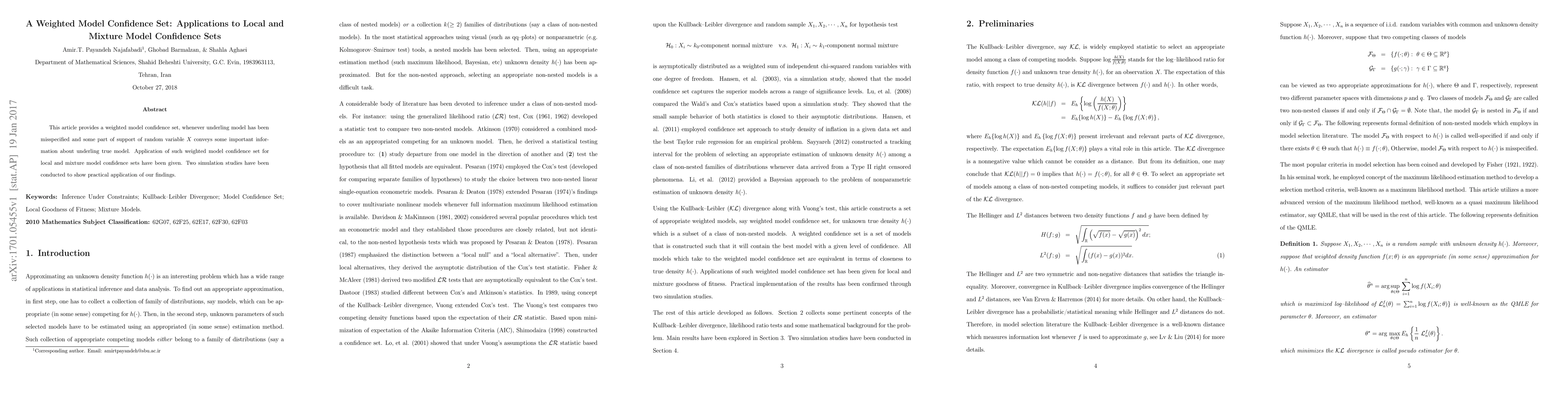 This article provides a weighted model confidence set, whenever underling model has been misspecified and some part of support of random variable $X$ conveys some important information about underling true model. Application of such weighted model confidence set for local and mixture model confidence sets have been given. Two simulation studies have been conducted to show practical application of our findings.