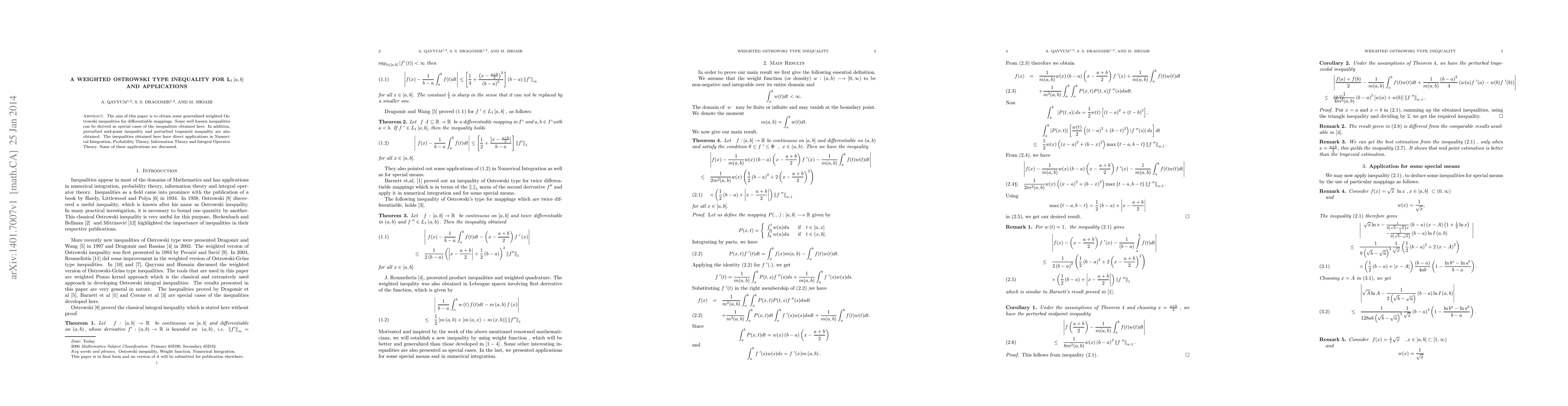 The aim of this paper is to obtain some generalized weighted Ostrowski inequalities for differentiable mappings. Some well known inequalities can be derived as special cases of the inequalities obtained here. In addition, perturbed mid-point inequality and perturbed trapezoid inequality are also obtained. The inequalities obtained here have direct applications in Numerical Integration, Probability Theory, Information Theory and Integral Operator Theory. Some of these applications are discussed.