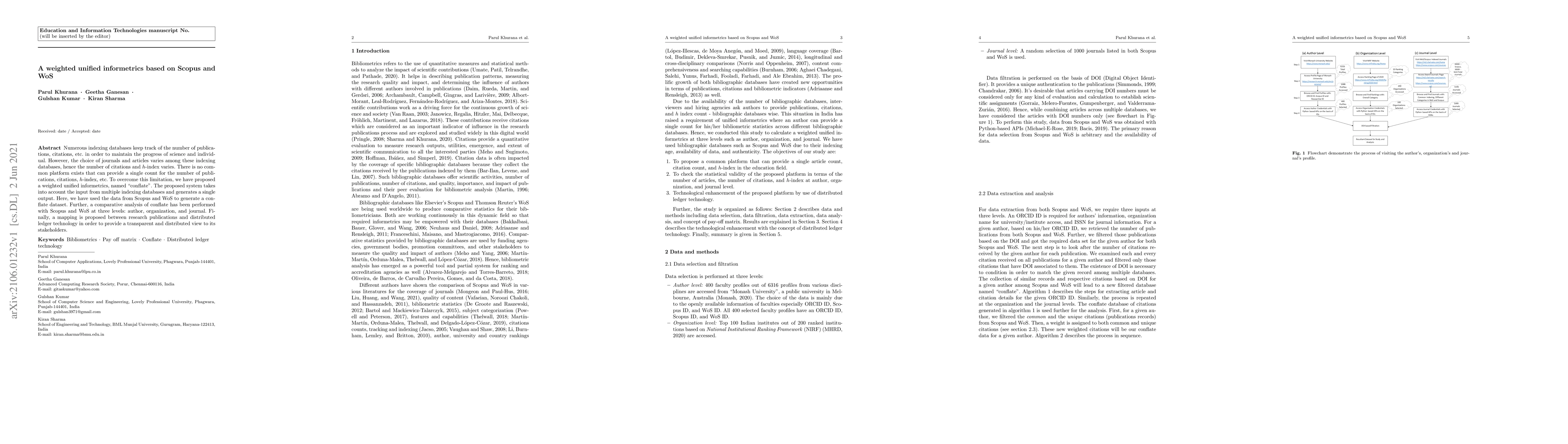 The paper introduces 'conflate', a weighted unified informetrics system that consolidates publication and citation data from multiple databases like Scopus and WoS into a single output. Comparative analysis shows conflate's superiority over individual databases at author, organization, and journal levels. The paper also proposes a mapping between research publications and distributed ledger technology for transparency.