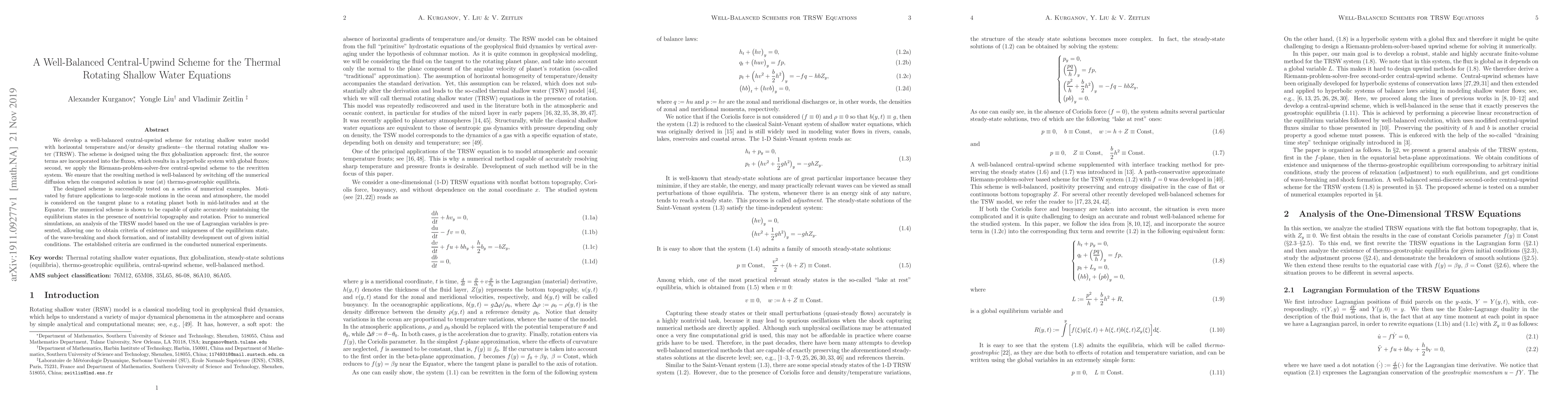 Alina Chertock, Alexander Kurganov, Vladimir Zeitlin et al.