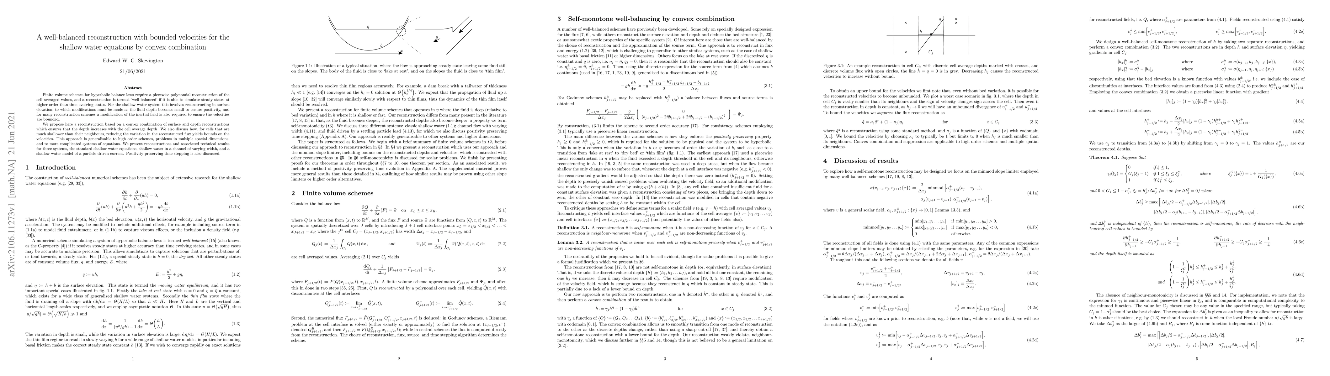 Finite volume schemes for hyperbolic balance laws require a piecewise polynomial reconstruction of the cell averaged values, and a reconstruction is termed `well-balanced' if it is able to simulate steady states at higher order than time evolving states. For the shallow water system this involves reconstructing in surface elevation, to which modifications must be made as the fluid depth becomes small to ensure positivity, and for many reconstruction schemes a modification of the inertial field is also required to ensure the velocities are bounded. We propose here a reconstruction based on a convex combination of surface and depth reconstructions which ensures that the depth increases with the cell average depth. We also discuss how, for cells that are much shallower than their neighbours, reducing the variation in the reconstructed flux yields bounds on the velocities. This approach is generalisable to high order schemes, problems in multiple spacial dimensions, and to more complicated systems of equations. We present reconstructions and associated technical results for three systems, the standard shallow water equations, shallow water in a channel of varying width, and a shallow water model of a particle driven current. Positivity preserving time stepping is also discussed.