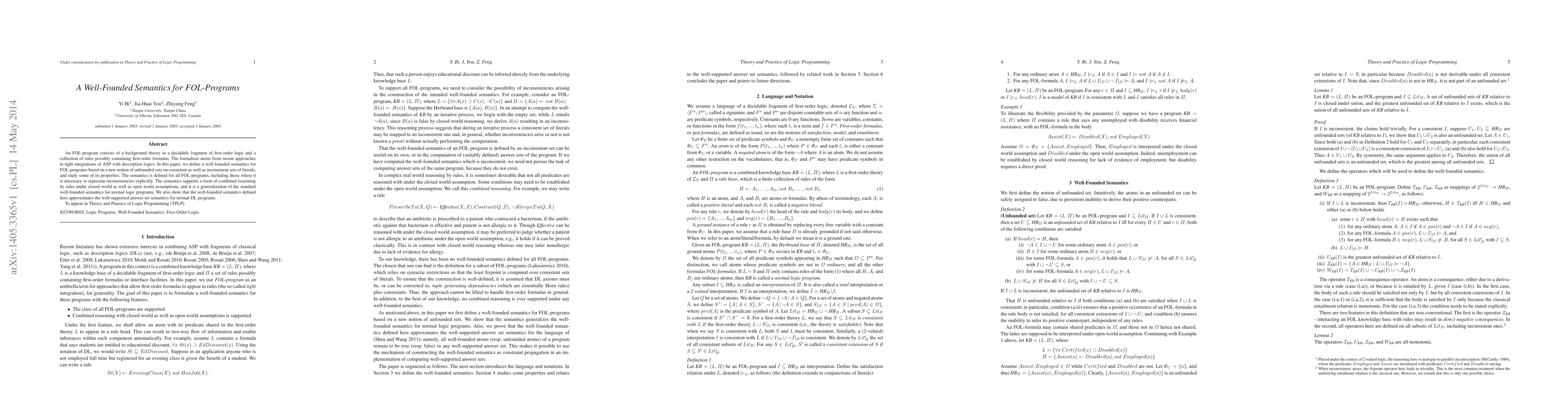 This paper defines a well-founded semantics for first-order logic (FOL) programs, extending it to handle inconsistencies explicitly. It introduces a new notion of unfounded sets and generalizes the standard semantics for normal logic programs, supporting combined reasoning under both closed and open world assumptions.