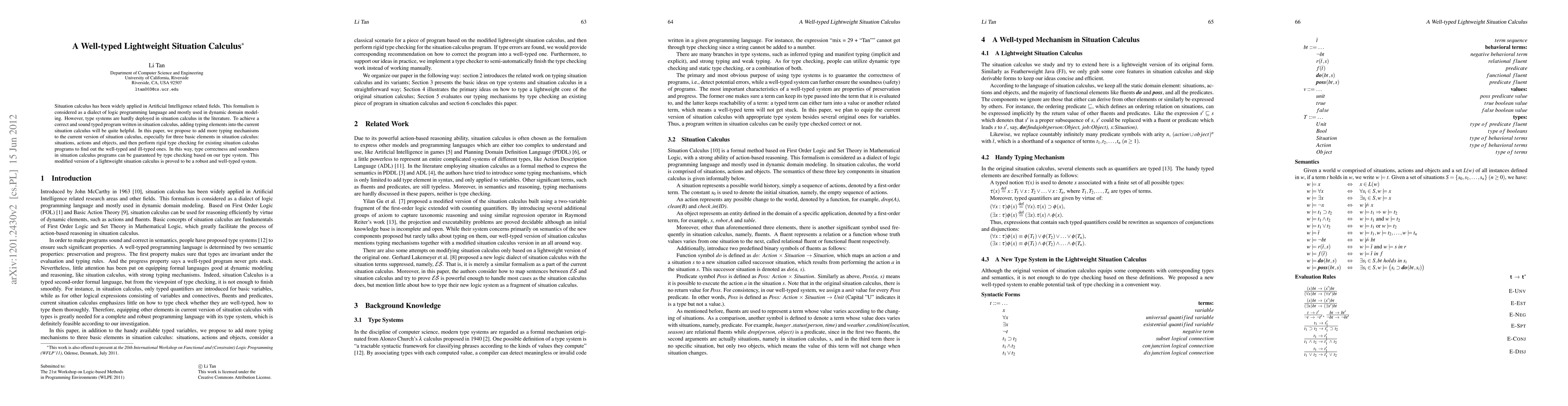 A modified lightweight situation calculus with a new types system was proposed to support complete and robust type checking.