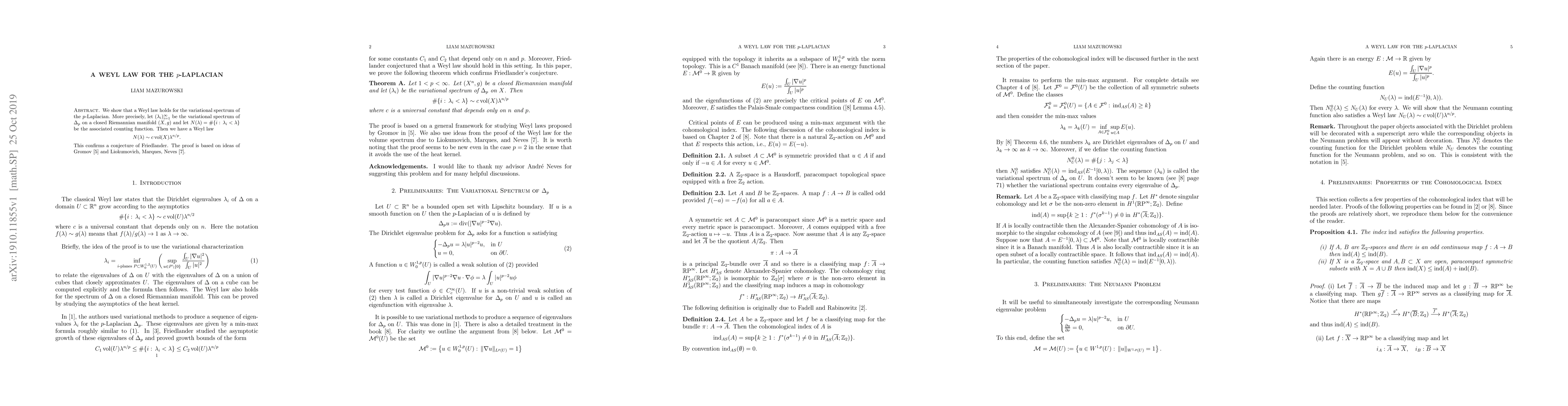 This paper establishes a Weyl law for the $p$-Laplacian on closed Riemannian manifolds, confirming Friedlander's conjecture. The variational spectrum of $\Delta_p$ follows a counting function $N(\lambda) \sim c \operatorname{vol}(X) \lambda^{n/p}$, where $c$ is a constant. The proof leverages insights from Gromov, Liokumovich, Marques, and Neves.