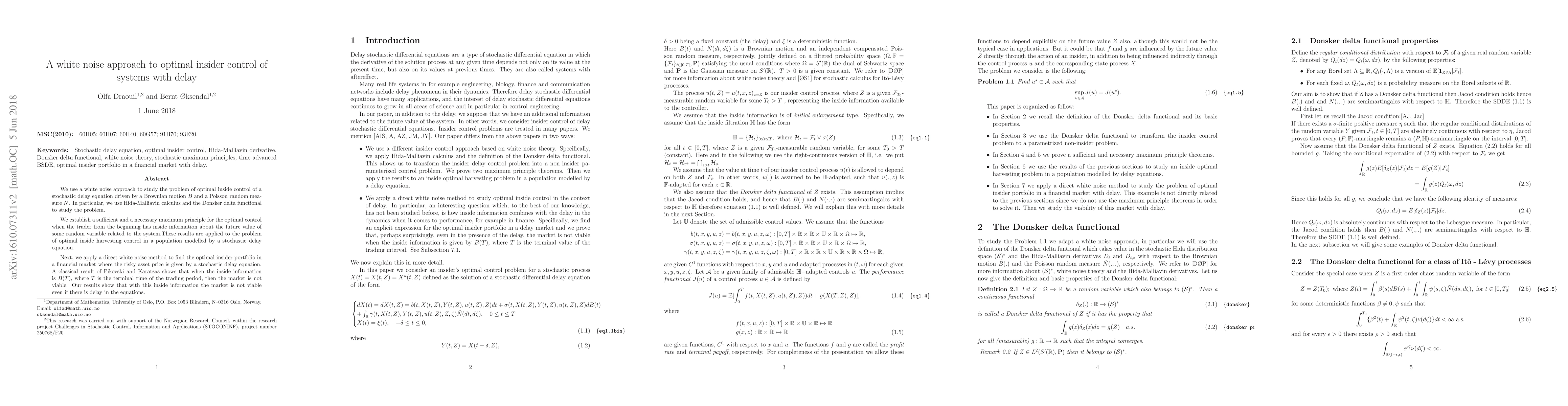 The paper introduces a direct white noise method to solve optimal insider control problems in systems with delay, extending existing methods in stochastic calculus.