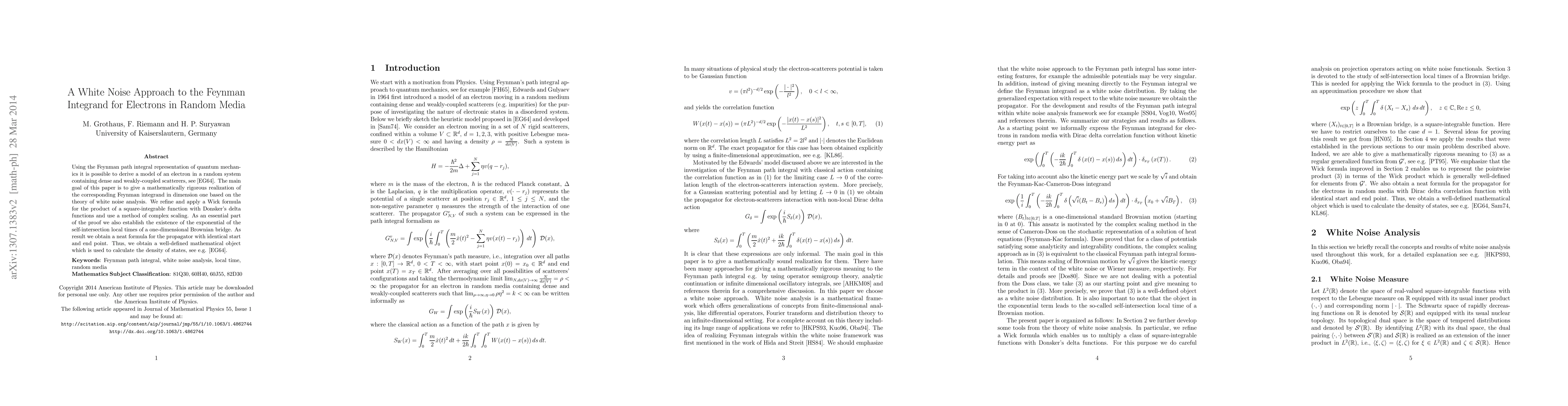 This paper rigorously constructs the Feynman integrand for electrons in random media using white noise analysis, establishing a Wick formula and the existence of Brownian bridge self-intersection local times, leading to a well-defined propagator formula for calculating the density of states.
