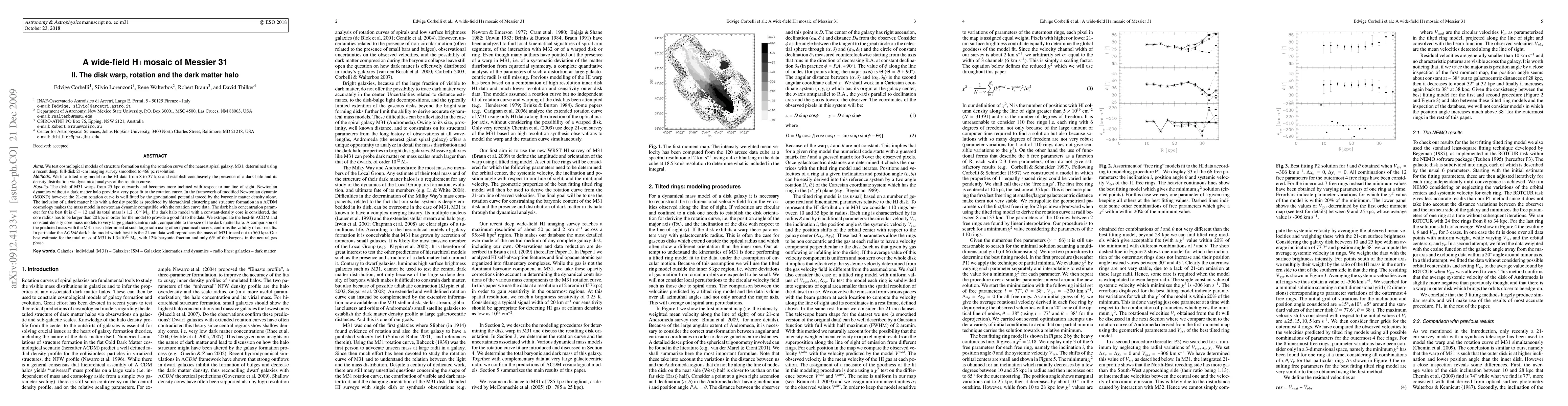 This paper analyzes the rotation curve of M31 using a deep HI imaging survey, revealing a warped disk and confirming the necessity of a dark matter halo to match the observed rotation curve. The best fit is achieved with a dark matter halo following a LambdaCDM cosmology model, estimating a total mass of 1.3 x 10^12 Msun for M31.