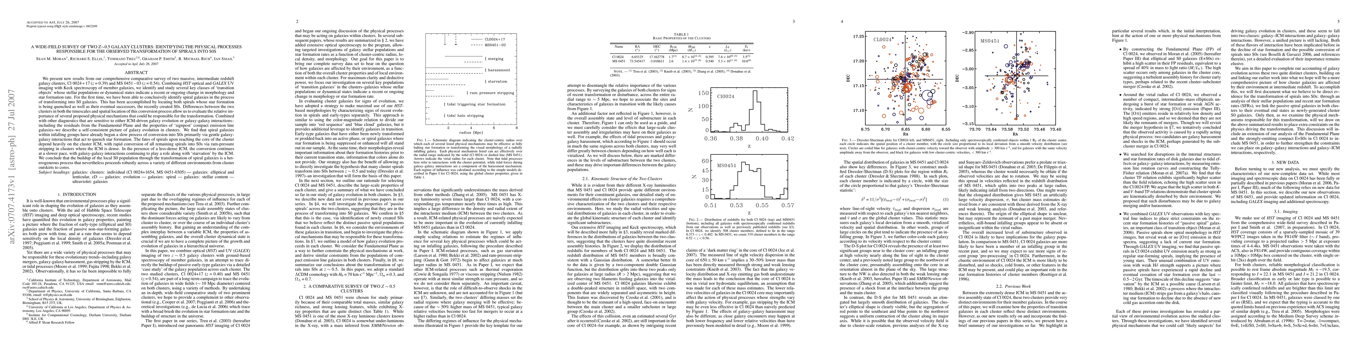 We present new results from our comprehensive comparative survey of two massive, intermediate redshift galaxy clusters, Cl0024+17 (z=0.39) and MS0451-03 (z=0.54). We identify and study several key classes of `transition objects' whose stellar populations or dynamical states indicate a recent or ongoing change in morphology and star formation rate. For the first time, we have been able to conclusively identify spiral galaxies in the process of transforming into S0 galaxies. This has been accomplished by locating both spirals whose star formation is being quenched as well as their eventual successors, the recently created S0s. Differences between the two clusters in both the timescales and spatial location of this conversion process allow us to evaluate the relative importance of several proposed physical mechanisms that could be responsible for the transformation. Combined with other diagnostics that are sensitive to either ICM-driven galaxy evolution or galaxy-galaxy interactions, we describe a self-consistent picture of galaxy evolution in clusters. We find that spiral galaxies within infalling groups have already begun a slow process of conversion into S0s primarily via gentle galaxy-galaxy interactions. The fates of spirals upon reaching the core of the cluster depend heavily on the cluster ICM, with rapid conversion of all remaining spirals into S0s via ram-pressure stripping in clusters where the ICM is dense. In the presence of a less-dense ICM, the conversion continues at a slower pace, with galaxy-galaxy interactions continuing to play a role along with `starvation' by the ICM. We conclude that the buildup of the local S0 population through the transformation of spiral galaxies is a heterogeneous process that nevertheless proceeds robustly across a variety of different environments.