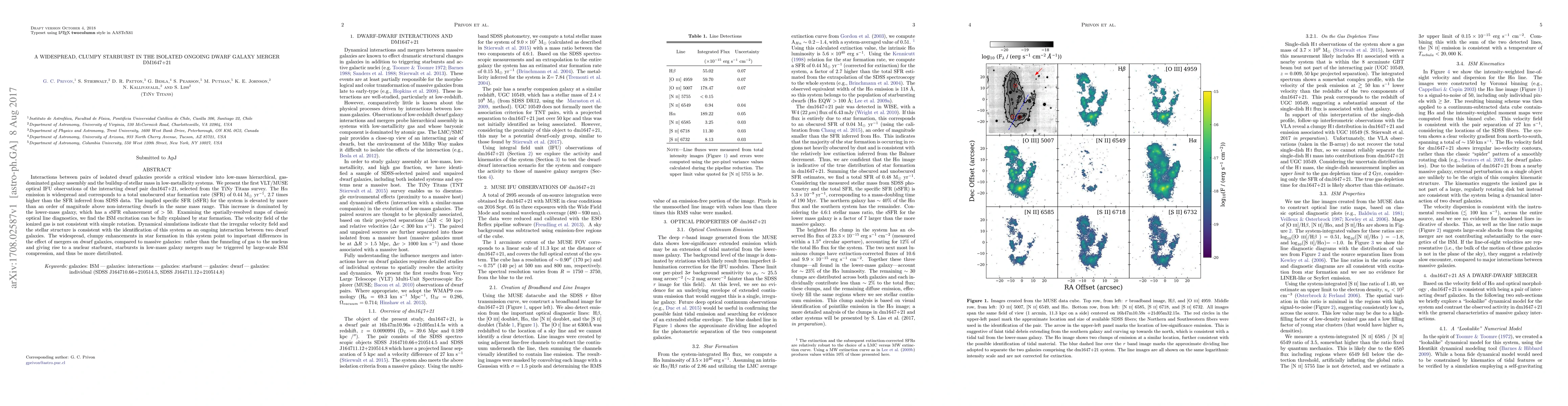 This paper presents VLT/MUSE observations of the interacting dwarf galaxy pair dm1647+21, revealing widespread and clumpy starburst activity with a significantly elevated specific star formation rate, particularly in the lower-mass galaxy. The study suggests that low-mass galaxy mergers trigger distributed starbursts through large-scale ISM compression, differing from the nuclear starbursts seen in massive galaxies.