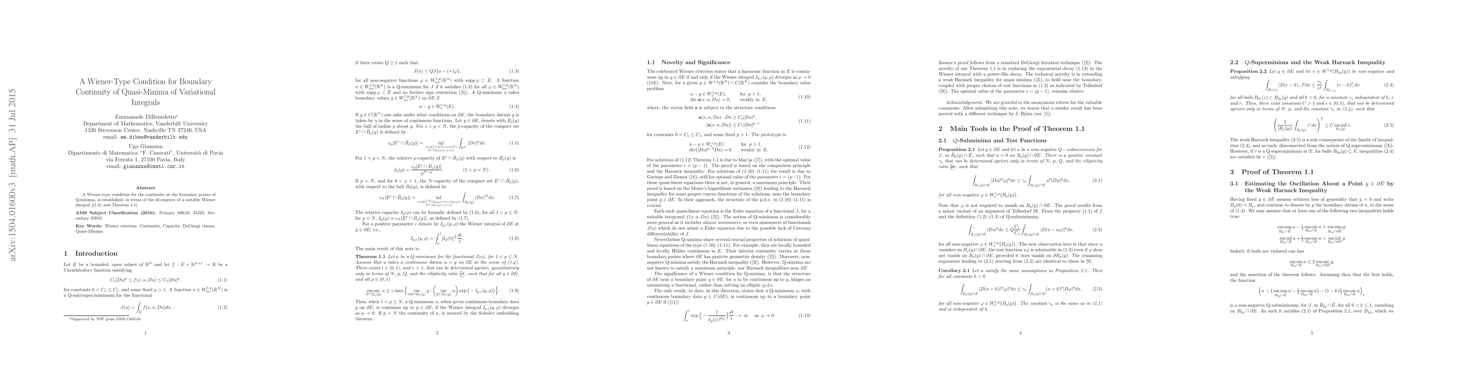 A Wiener-type condition for the continuity at the boundary points of Q-minima, is established, in terms of the divergence of a suitable Wiener integral.
