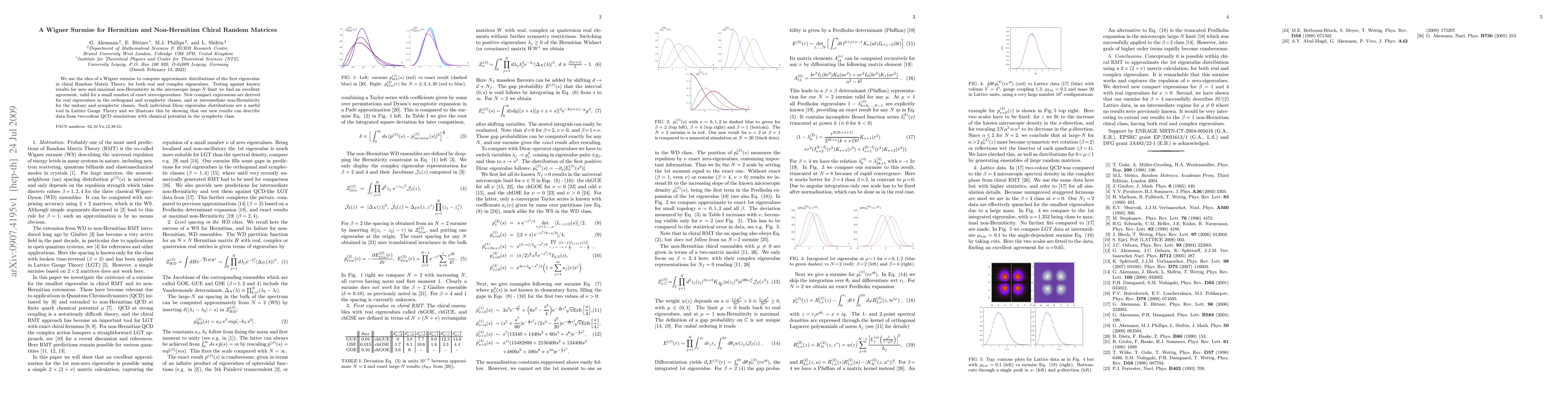 We use the idea of a Wigner surmise to compute approximate distributions of the first eigenvalue in chiral Random Matrix Theory, for both real and complex eigenvalues. Testing against known results for zero and maximal non-Hermiticity in the microscopic large-N limit we find an excellent agreement, valid for a small number of exact zero-eigenvalues. New compact expressions are derived for real eigenvalues in the orthogonal and symplectic classes, and at intermediate non-Hermiticity for the unitary and symplectic classes. Such individual Dirac eigenvalue distributions are a useful tool in Lattice Gauge Theory and we illustrate this by showing that our new results can describe data from two-colour QCD simulations with chemical potential in the symplectic class.