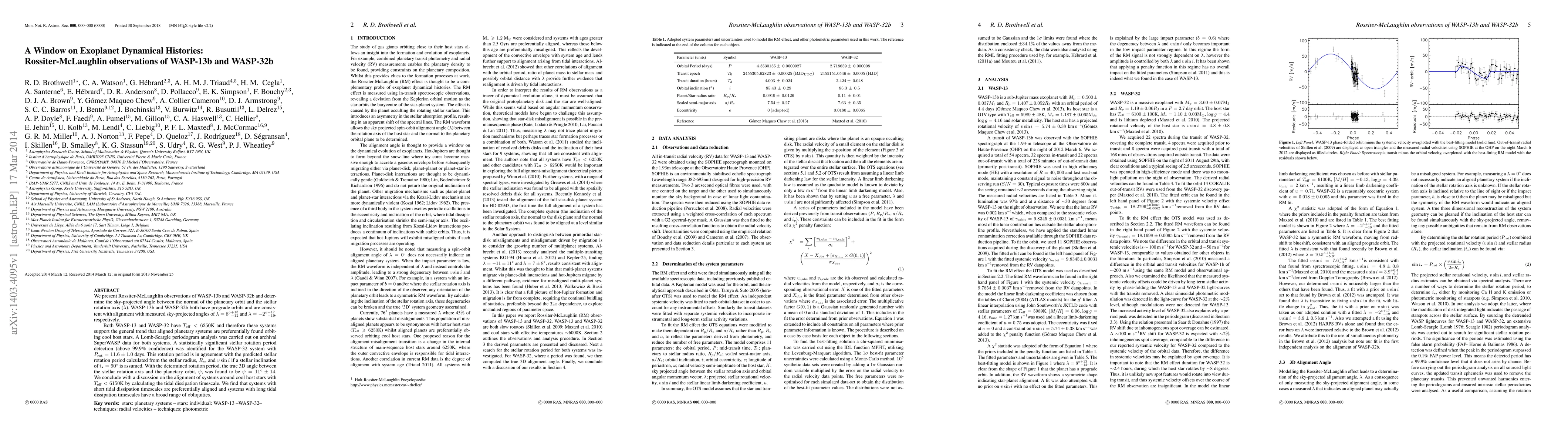 This paper reports Rossiter-McLaughlin observations of the exoplanets WASP-13b and WASP-32b, revealing their prograde orbits and alignment with their cool host stars. The study finds that aligned systems are more common around cooler stars, and identifies a stellar rotation period for WASP-32, supporting the trend of tidal dissipation influencing planetary alignment.