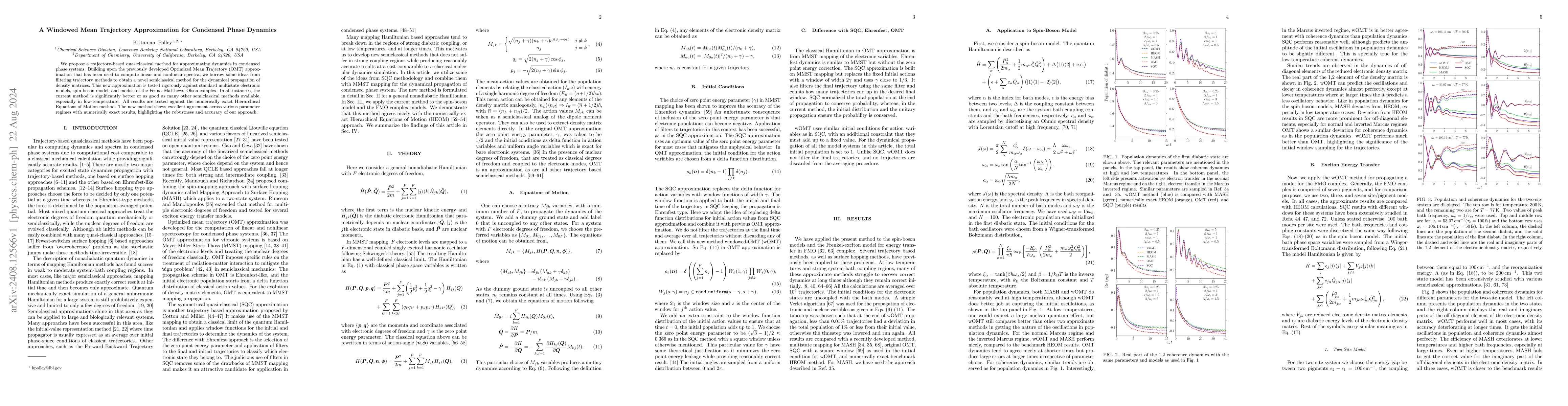 The paper introduces a new windowed mean trajectory approximation for simulating condensed phase dynamics, showing superior performance compared to existing semiclassical methods, particularly at low temperatures, and demonstrating excellent agreement with numerically exact results. This method improves upon the Optimized Mean Trajectory approximation by incorporating filtering trajectory ideas.