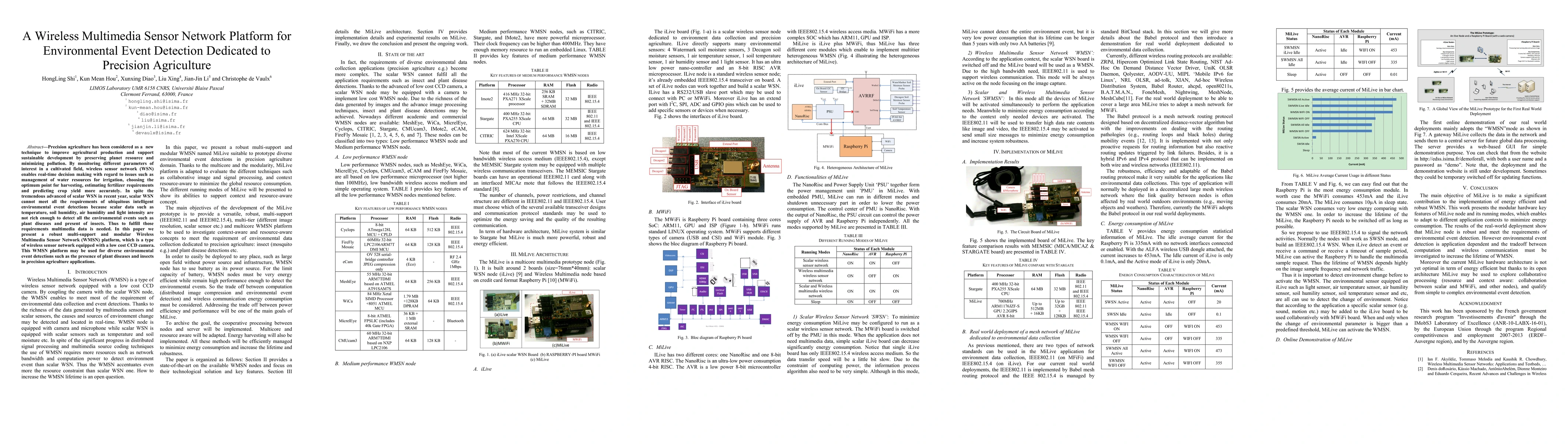 Unlike existing low and medium performance WMSN nodes, MiLive combines a powerful Raspberry Pi board with an ultra-low power nano-controller and an 8-bit AVR RISC, offering improved performance and adaptability for precision agriculture.