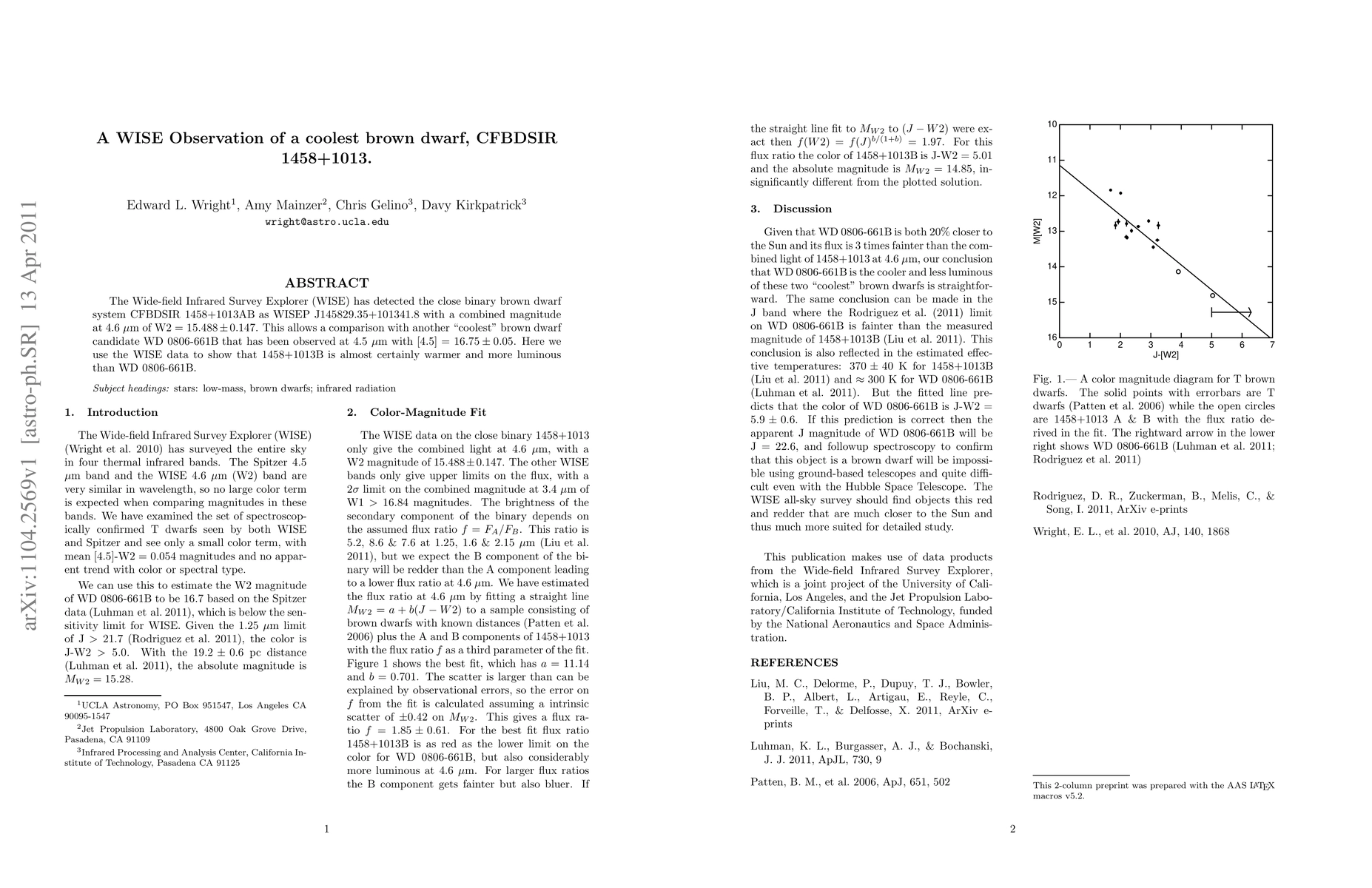 The WISE survey identified CFBDSIR 1458+1013AB as the coolest brown dwarf system, with 1458+1013B being warmer and more luminous than another candidate, WD 0806-661B. This comparison highlights the relative properties of these two "coolest" brown dwarfs.