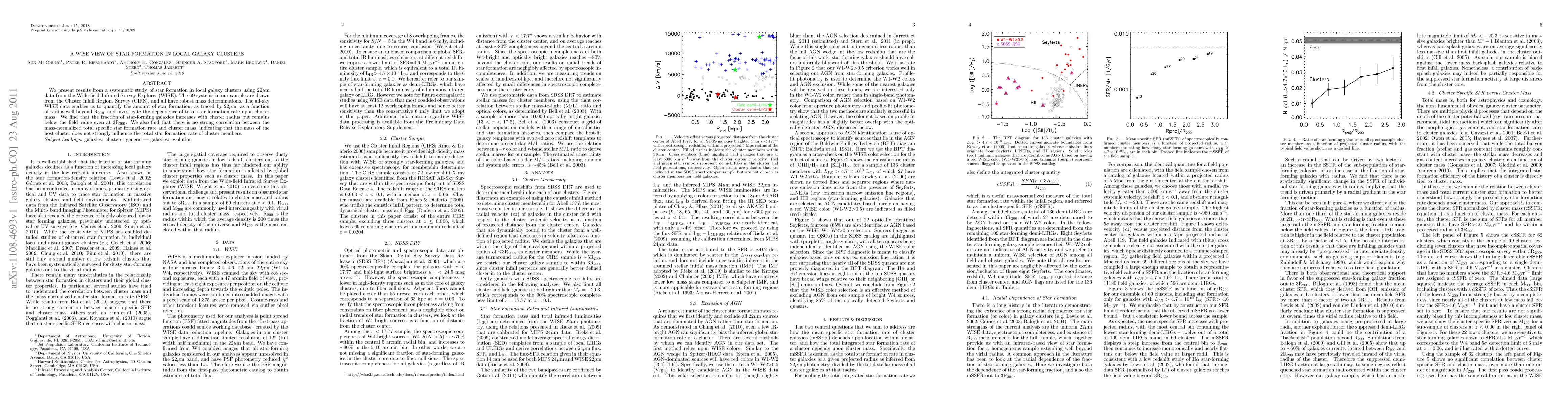 Researchers studied star formation in local galaxy clusters using WISE data and found that star-forming galaxies increase with cluster radius, but not strongly influenced by cluster mass.
