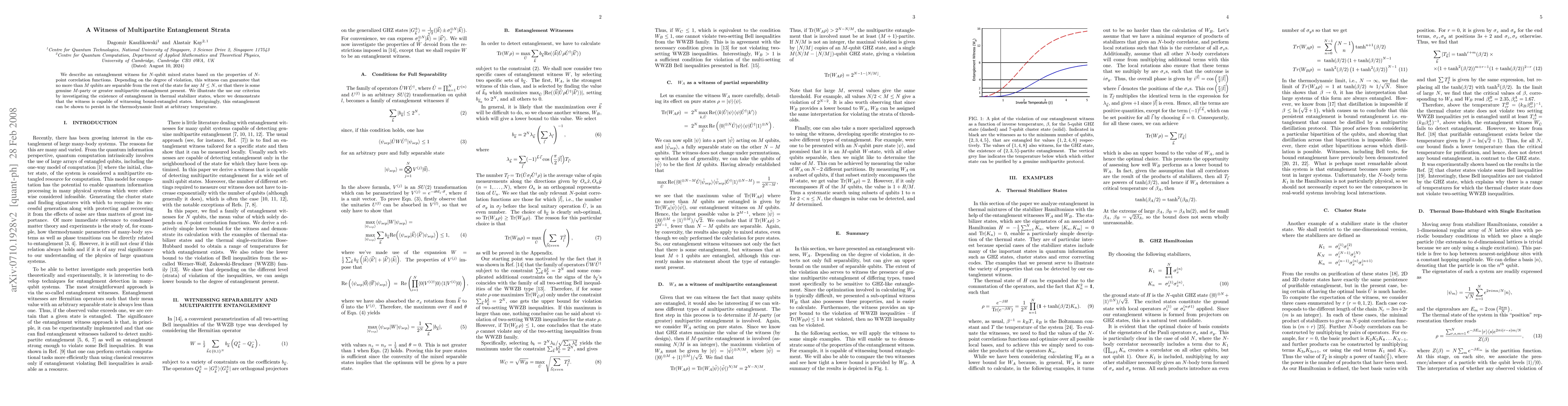 We describe an entanglement witness for $N$-qubit mixed states based on the properties of $N$-point correlation functions. Depending on the degree of violation, this witness can guarantee that no more than $M$ qubits are separable from the rest of the state for any $M\leq N$, or that there is some genuine $M$-party or greater multipartite entanglement present. We illustrate the use our criterion by investigating the existence of entanglement in thermal stabilizer states, where we demonstrate that the witness is capable of witnessing bound-entangled states. Intriguingly, this entanglement can be shown to persist in the thermodynamic limit at arbitrary temperature.