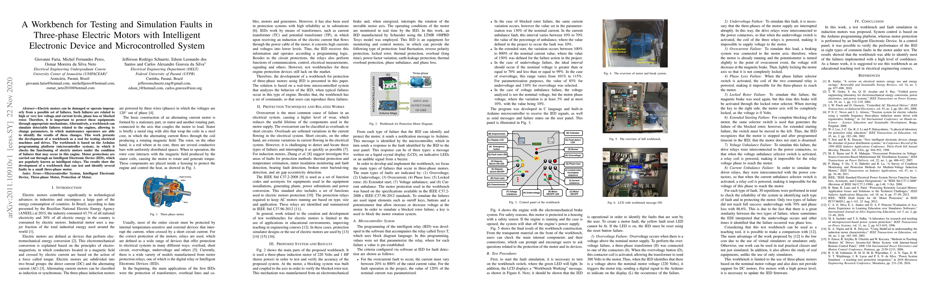 This paper presents a workbench for testing and simulating faults in three-phase electric motors using an Arduino-based microcontroller system and an Intelligent Electronic Device (IED). The workbench allows for the identification of failures such as voltage/current anomalies, phase loss, and blocked rotor, aiding maintenance operators in understanding fault impacts.