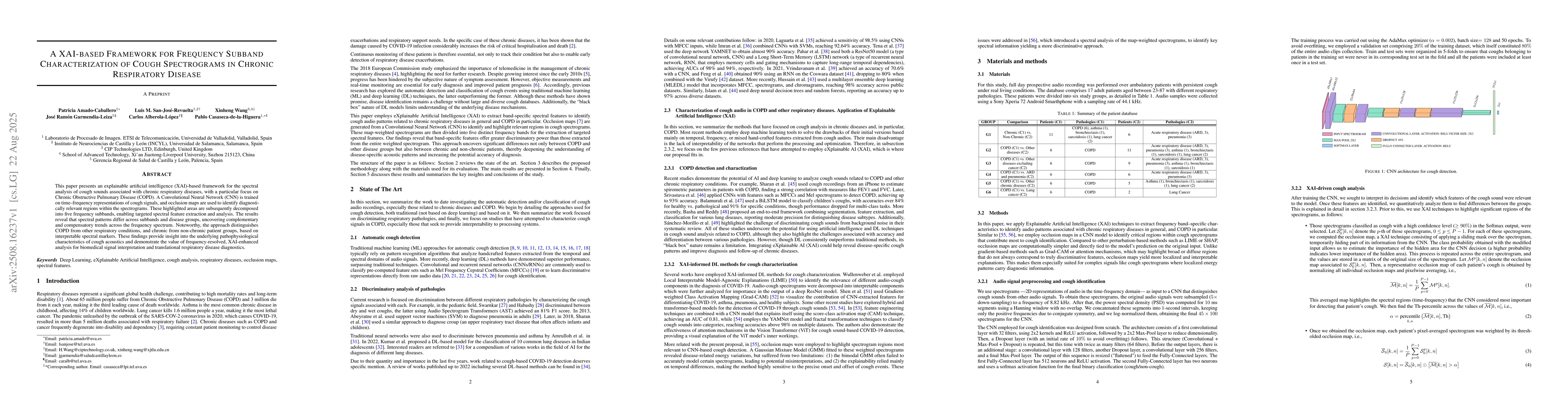 This paper presents an explainable artificial intelligence (XAI)-based framework for the spectral analysis of cough sounds associated with chronic respiratory diseases, with a particular focus on Chronic Obstructive Pulmonary Disease (COPD). A Convolutional Neural Network (CNN) is trained on time-frequency representations of cough signals, and occlusion maps are used to identify diagnostically relevant regions within the spectrograms. These highlighted areas are subsequently decomposed into five frequency subbands, enabling targeted spectral feature extraction and analysis. The results reveal that spectral patterns differ across subbands and disease groups, uncovering complementary and compensatory trends across the frequency spectrum. Noteworthy, the approach distinguishes COPD from other respiratory conditions, and chronic from non-chronic patient groups, based on interpretable spectral markers. These findings provide insight into the underlying pathophysiological characteristics of cough acoustics and demonstrate the value of frequency-resolved, XAI-enhanced analysis for biomedical signal interpretation and translational respiratory disease diagnostics.
