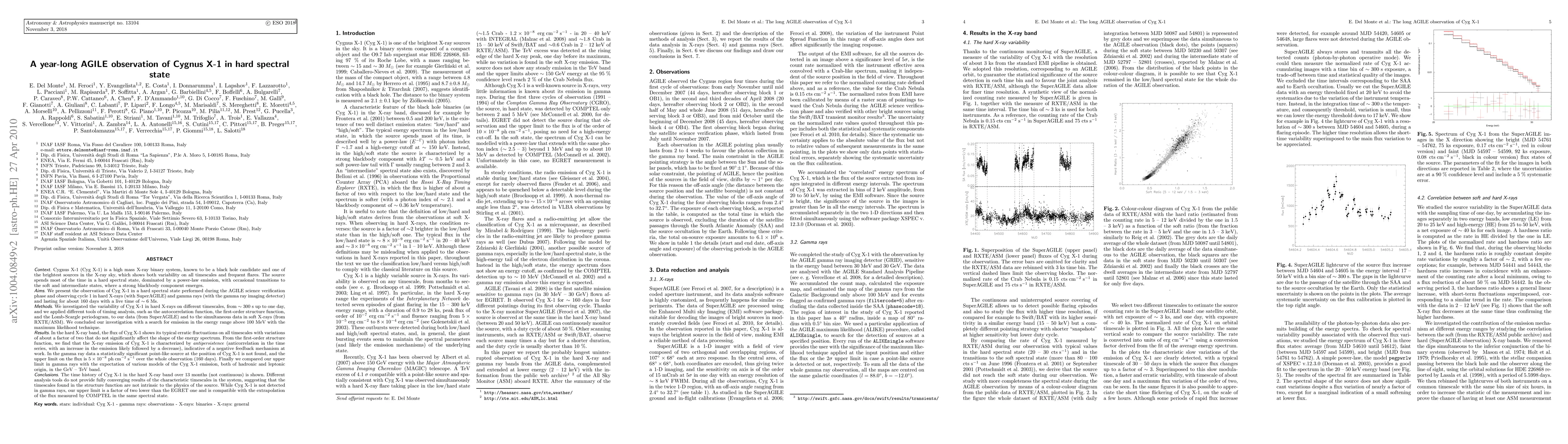 We present the observation of Cyg X-1 in hard spectral state performed during the AGILE Science Verification Phase and Observing Cycle 1 in hard X-rays (with SuperAGILE) and gamma rays (with the GRID) and lasting for about 160 days with a live time of $\sim 6$ Ms. We investigate the variability of Cyg X-1 in hard X-rays at different timescales, from $\sim 300$ s up to one day, and we apply different tools of timing analysis, such as the autocorrelation function, the first order structure function and the Lomb-Scargle periodogram, to our data (from SuperAGILE) and to the simultaneous data in soft X-rays (from RXTE/ASM). We conclude our investigation with a search for emission in the energy range above 100 MeV with the maximum likelihood technique. In the hard X-ray band the flux of Cyg X-1 shows its typical erratic fluctuations at all timescales with variations of about a factor of two that do not affect significantly the shape of the energy spectrum. From the first order structure function we find that the X-ray emission of Cyg X-1 is characterized by \textit{antipersistence}, indication of a negative feedback mechanism at work. In the gamma ray data a statistically significant point-like source at the position of Cyg X-1 is not found and the upper limit on the flux is $\mathrm{5 \times 10^{-8} \; ph \; cm^{-2} \; s^{-1}}$, over the whole observation (160 days). Finally we compare our upper limit in gamma rays with the expectation of various models of the Cyg X-1 emission, of both hadronic and leptonic origin, in the GeV -- TeV band. The time history of Cyg X-1 in the hard X-ray band over 13 months (not continuous) is shown. Different tools of analysis do not provide fully converging results of the characteristic timescales in the system, suggesting that the timescales found in the structure function are not intrinsic to the physics of the source.